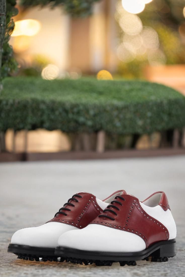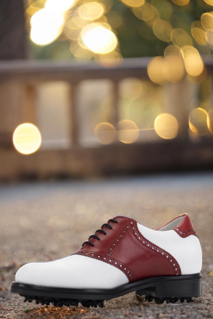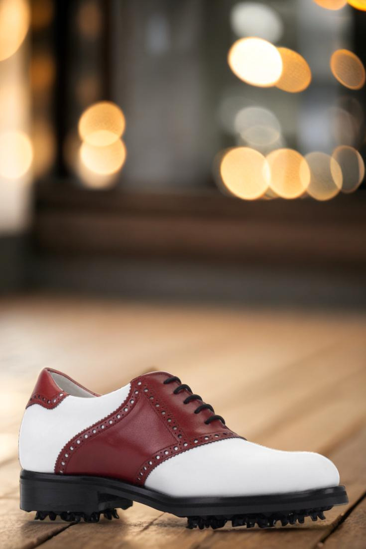 Introducing the Lincoln Ave. Saddle Shoe No. 8286 from Robert August – the ultimate golf shoe for the modern player. Expertly handcrafted in Spain, this shoe exudes luxury and sophistication with its combination of white and red luxe calf leather. From front to back, every aspect of this shoe has been carefully designed and selected to elevate your golfing experience.