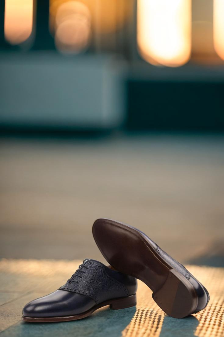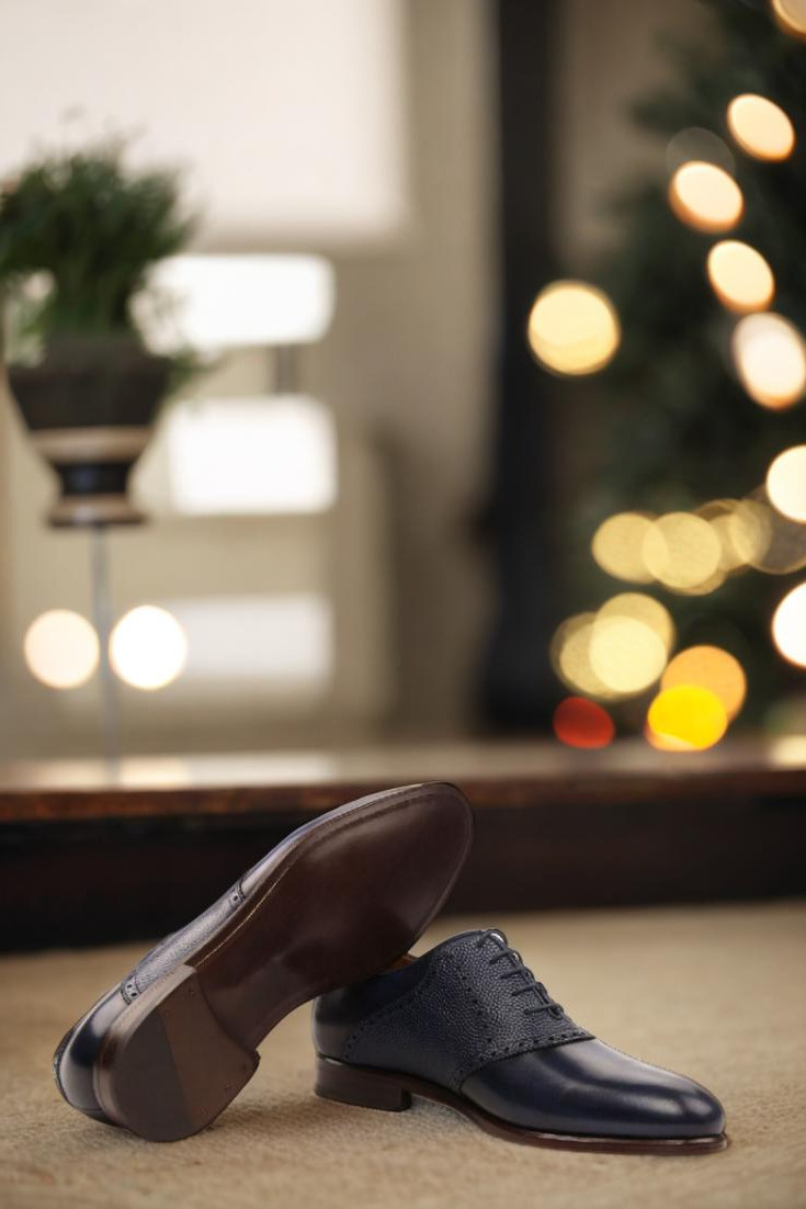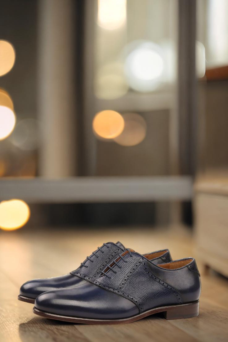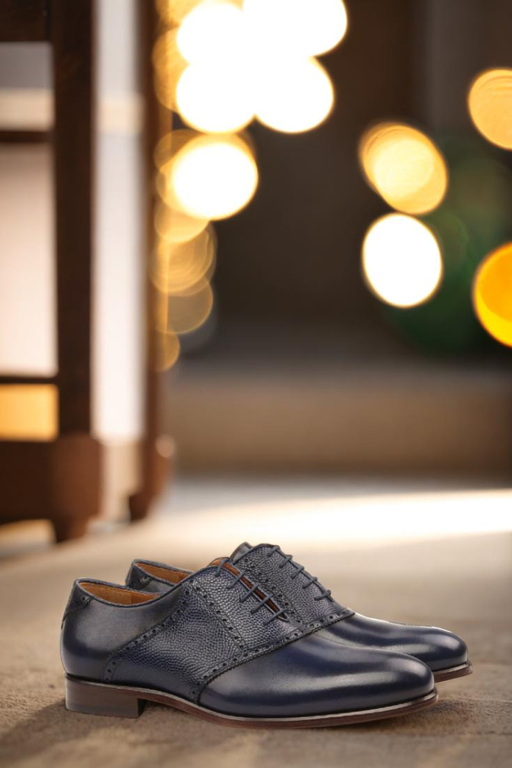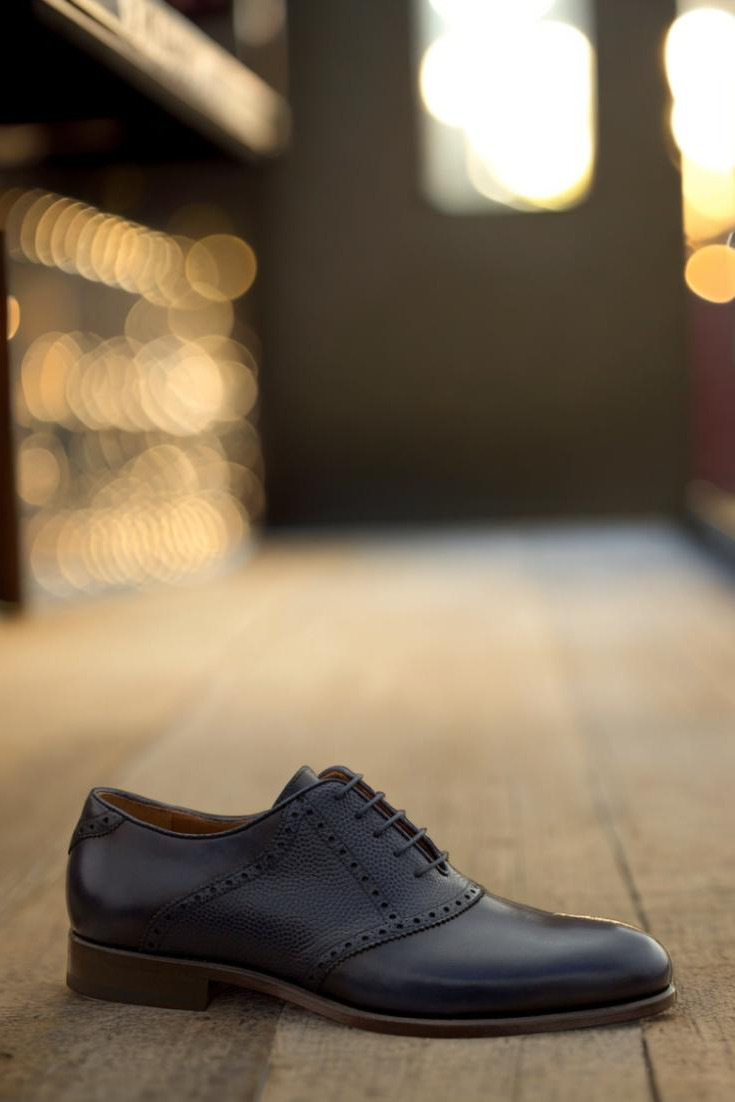 Introducing the ultimate blend of style and craftsmanship – The Lincoln Ave. Saddle Shoe No. 2439 from Robert August. This timeless classic is carefully handcrafted in Spain to ensure the utmost quality and attention to detail. The uppers are a striking combination of navy blue painted calf leather and pebble grain with accents of rich tan calf leather. To tie it all together, the laces are also a chic navy blue. But it’s not just about looks, these shoes are built to last with a durable brown leather sole and sturdy Goodyear welt construction. And if this isn’t exactly what you’re looking for, no problem – you can easily customize them to fit your personal style. So why settle for ordinary when you can step up your game with The Lincoln Ave. Saddle Shoe No. 2439 from Robert August. Order now and elevate your shoe game to the next level with these sleek and sophisticated shoes.