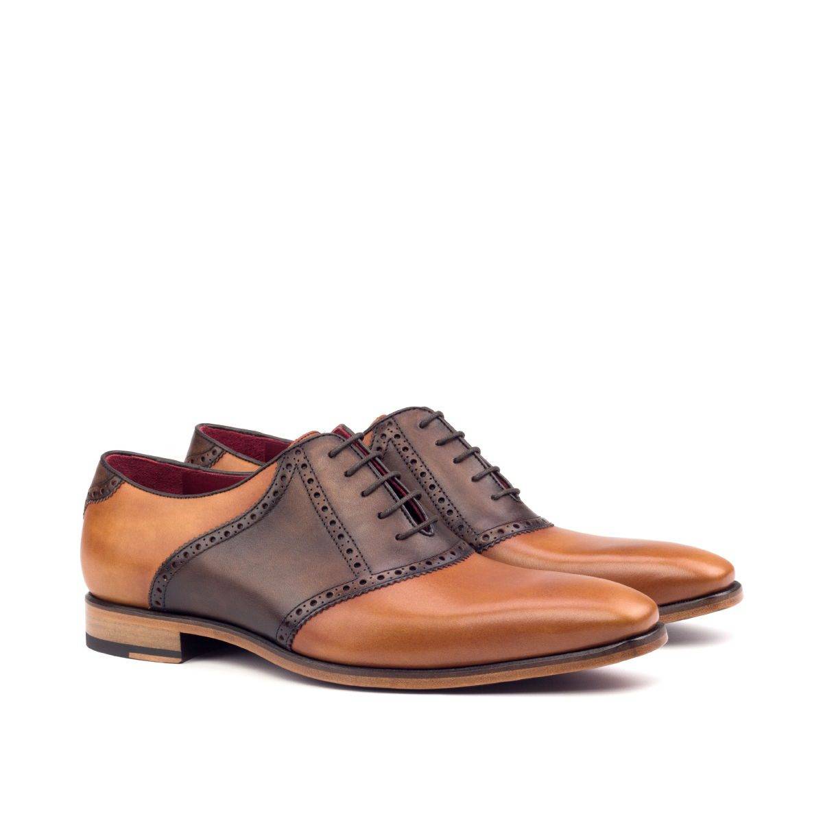 The front, saddle, tongue, and sides feature stunning cognac painted calf leather, exuding a sense of luxury and refinement. And the back, laces, and lining add a touch of contrast with their rich dark brown and red hues.
