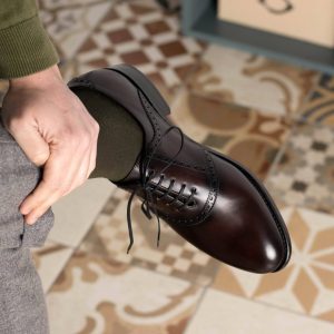 These shoes feature uppers crafted from Dark Brown Box Calf, lightly burnished for both texture and depth while the lining is constructed from luxurious Brown Calf Leather for a soft and comfortable interior. The iconic Black-Round laces ensure wearers can snugly fasten their shoe perfectly while obtaining a distinctly vintage aesthetic they won’t find anywhere else. To complete these quintessential saddle shoes, the Soles are hand-painted in Dark Red Leather suitable for City Welt walkers, paired with The 312 last which has a rounded toe to provide a traditional English style finish.