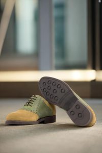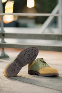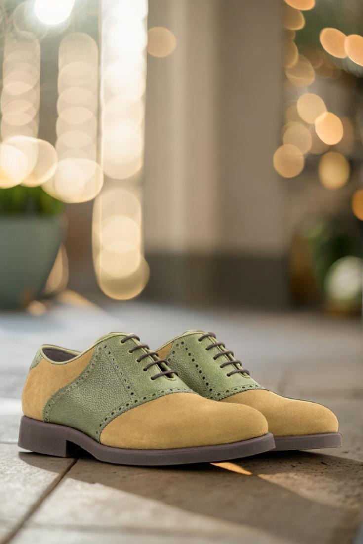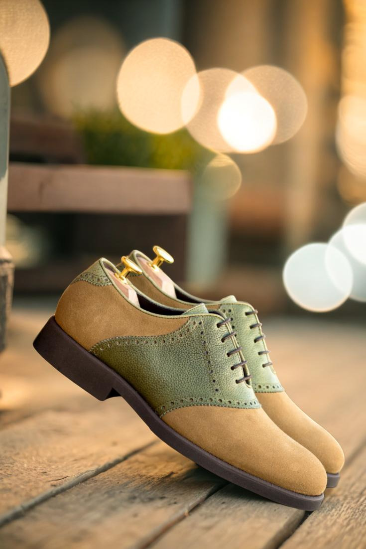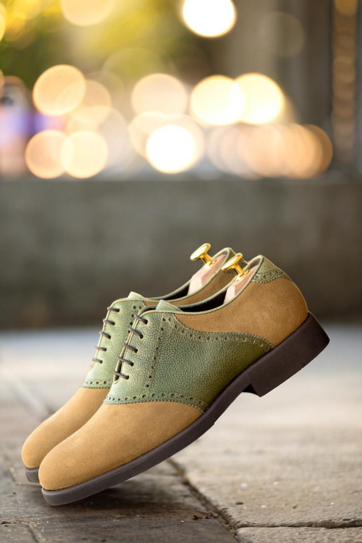 Introducing the Lincoln Ave. Saddle Shoe No. 5815: the perfect shoe for any occasion. Look stylish and stay comfortable wearing this timeless classic. Crafted with camel Luxe Suede on the front, olive full grain leather on the saddle and tongue, brown calf leather lining, and a heeled rubber sole-brown, this shoe features a sleek, sophisticated color palette. With its timeless style, it’s a smart addition to any look. The brown laces and round toe provide a vintage feel that’s both classic and modern. Perfect for the office, a night out, or even a weekend getaway, the Lincoln Ave. Saddle Shoe No. 5815 is the must-have shoe for any season. Get ready to turn heads and make a statement with this elegant silhouette.