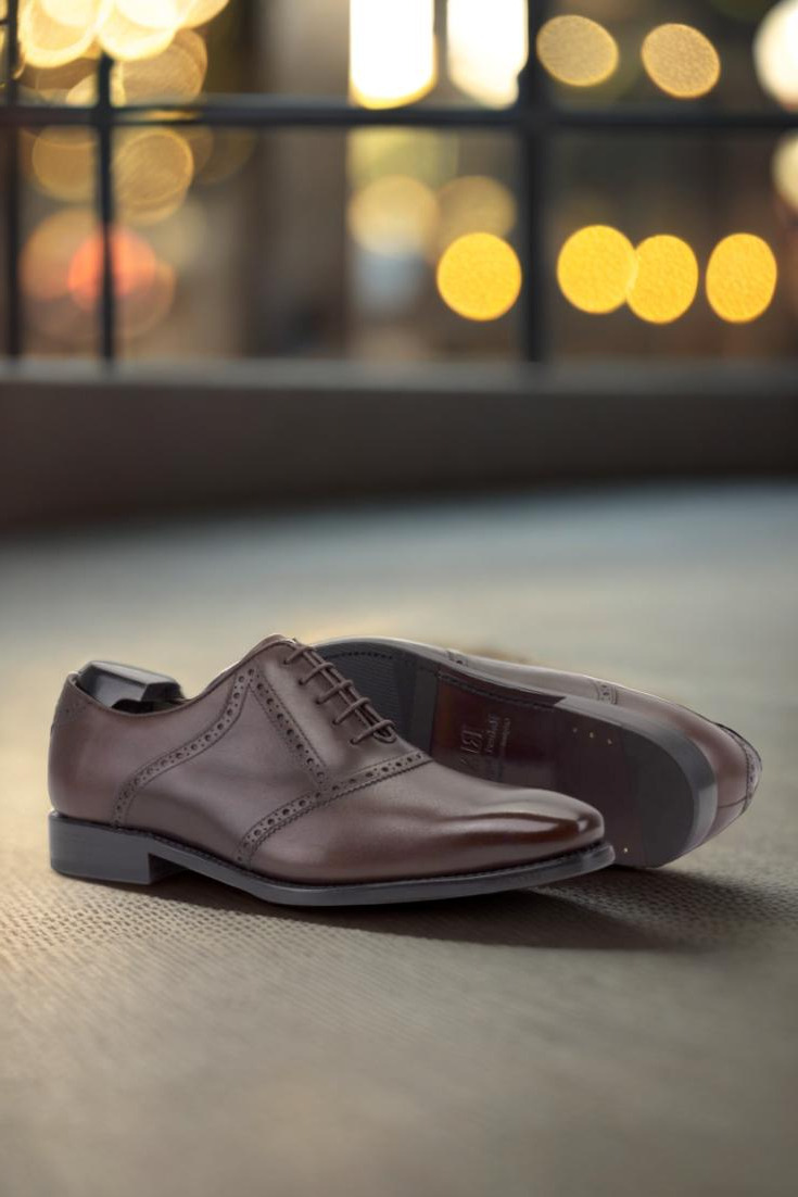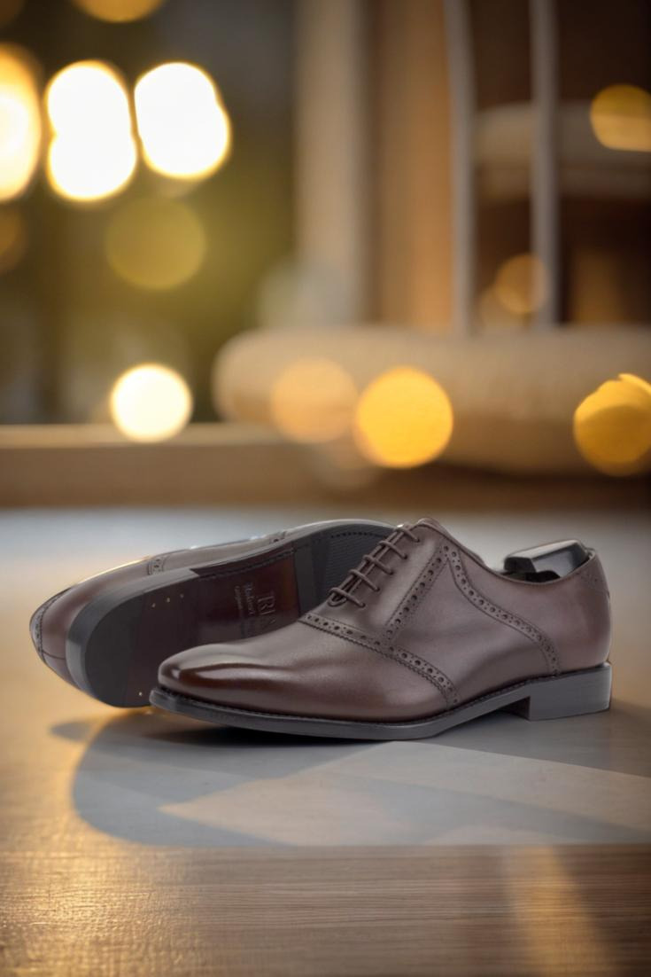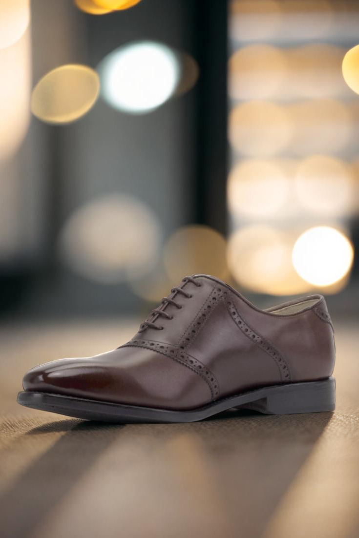Introducing the Lincoln Ave. Saddle Shoe No. 8265 from Robert August. This shoe is the epitome of classic, timeless style with a modern twist. Crafted with luxurious Hickory Brown and Dark Brown Luxe Calf leather, the contrasting colors create a striking and sophisticated look. The round-brown laces add a touch of elegance, while the beige calf leather lining ensures comfort for all-day wear.
