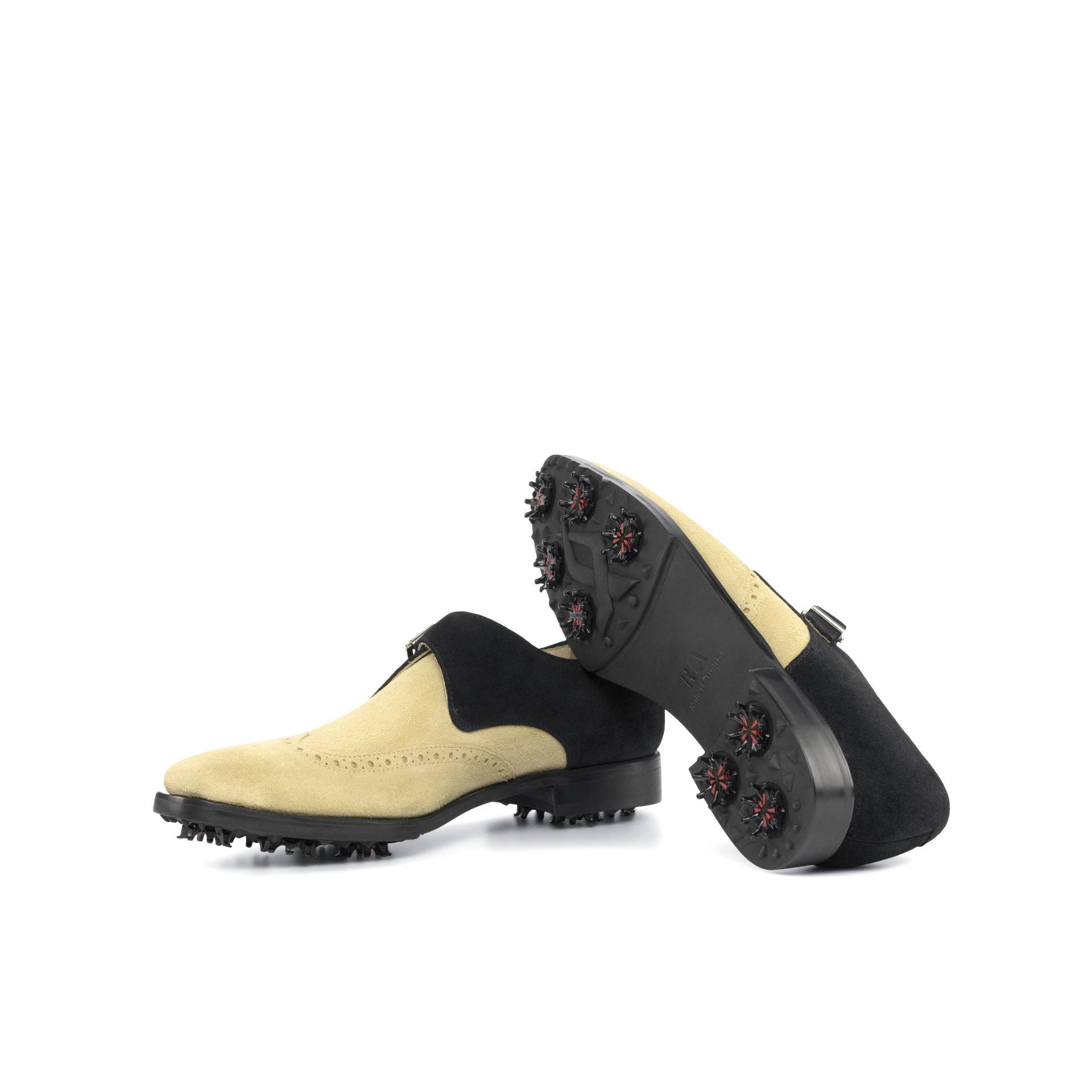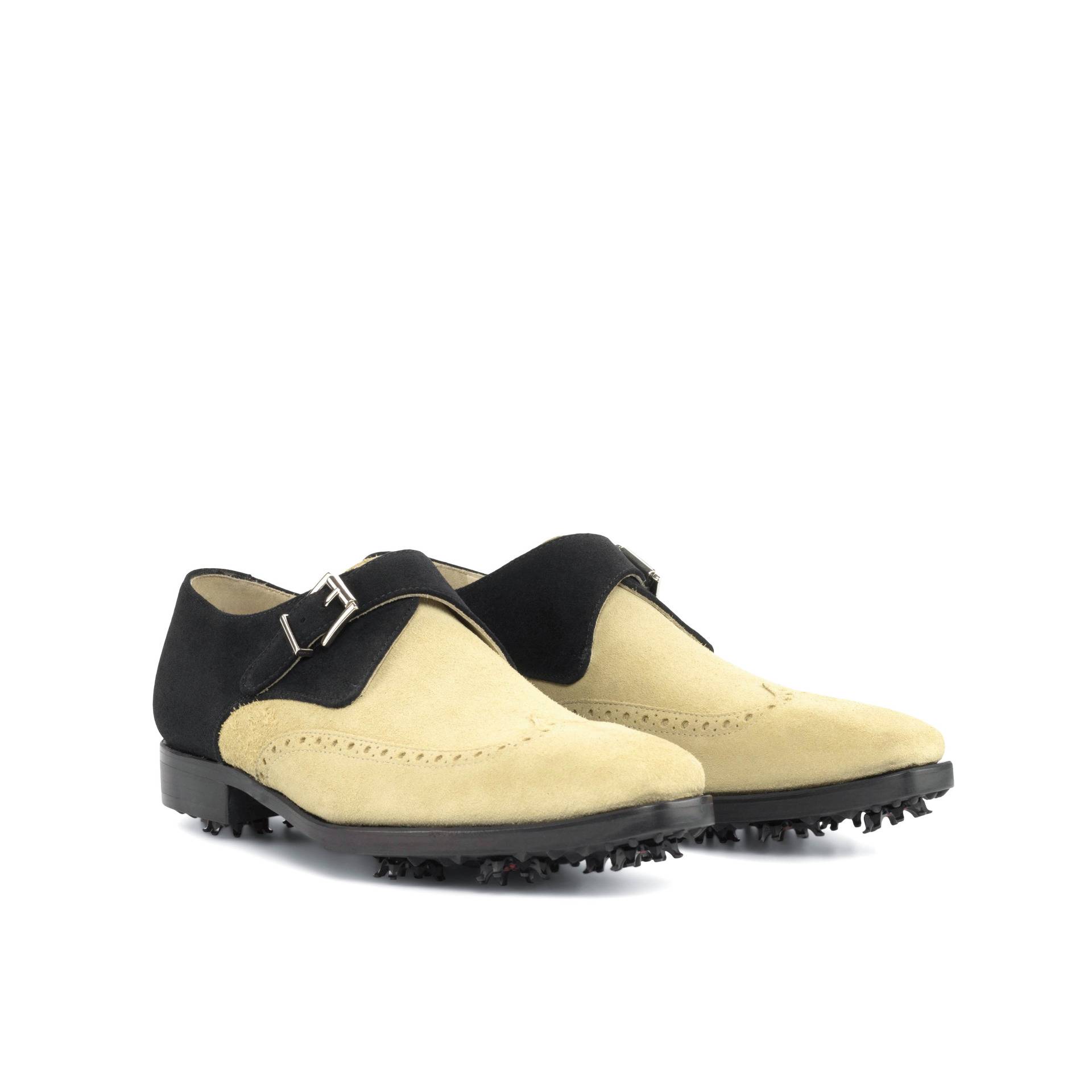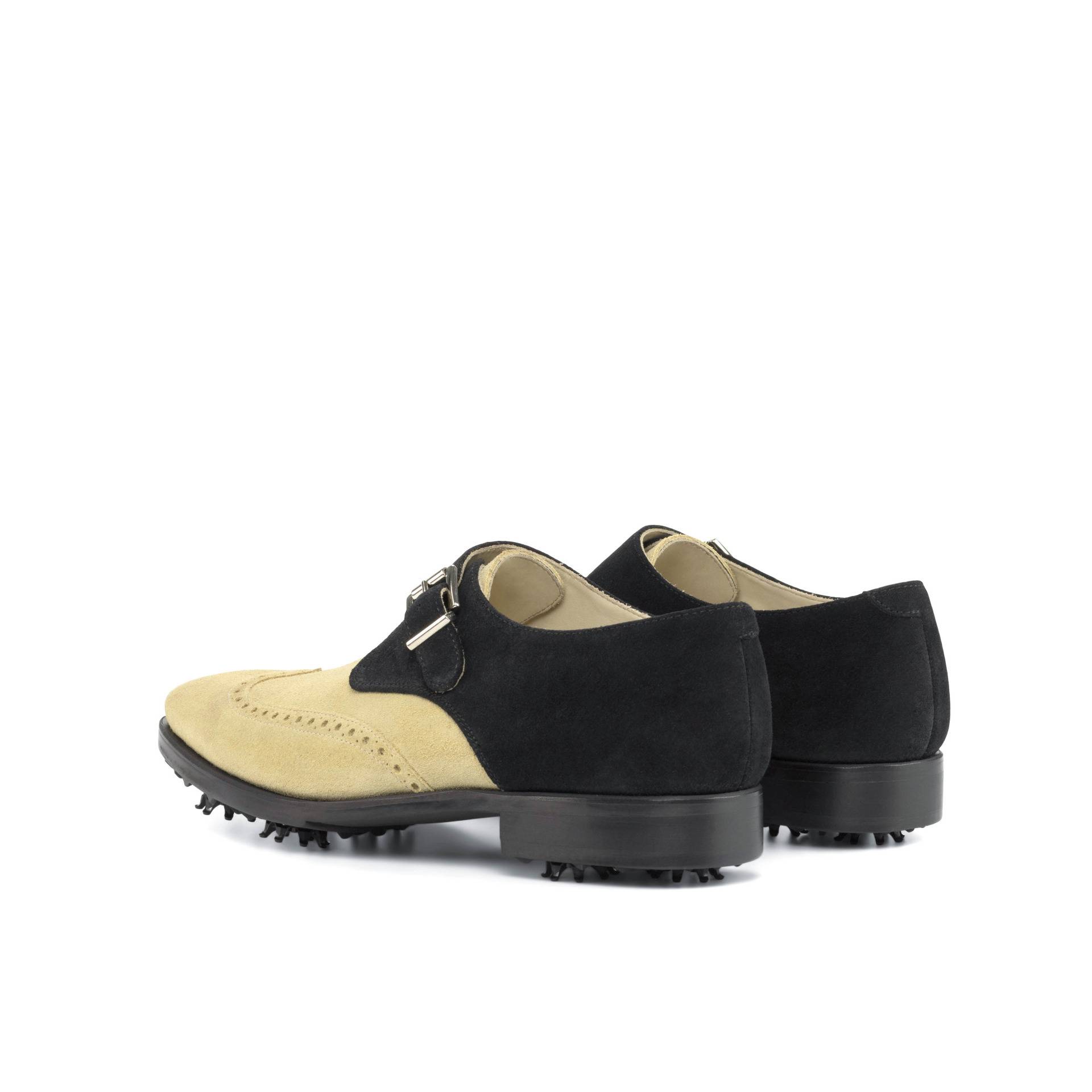 Introducing the Cicero Ave. Single Monk No. 8040 golf shoe, a luxurious addition to your wardrobe that will take your game to new heights! Crafted from only the finest leather and suede materials, these shoes look and feel amazing no matter where the fairway leads you. The sand luxe suede wingtip and vamp provide an elegant contrast with the black luxe suede quarters. Shining squared-nickel buckles encase beige calf leather lining for added fit and comfort as you master any course. Even better, the Softspikes® cleats offer superior traction for secure footing on any terrain – making sure you maintain control during every swing of your club! The Cicero Ave. Single Monk No. 8040 is modern luxury at its finest – so don’t go one more hole without it!