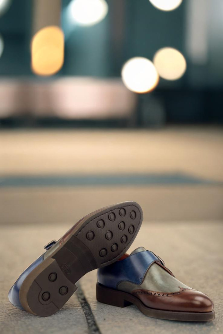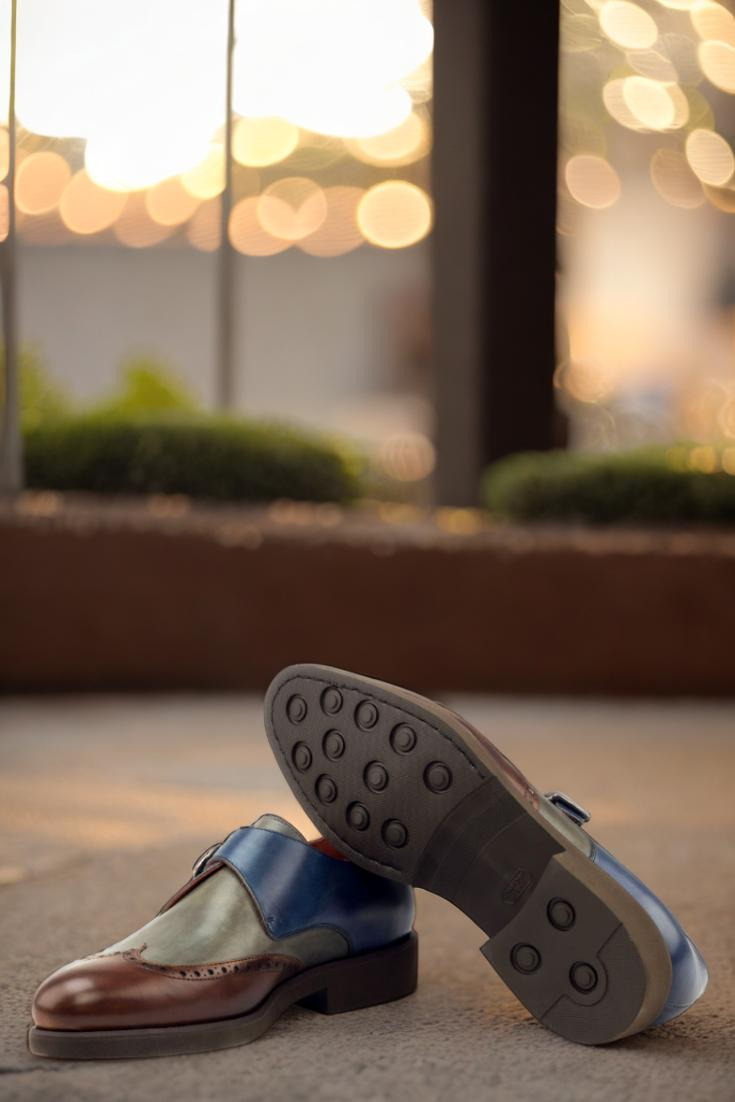 Crafted from an enchanting symphony of painted calf leathers, the Cicero Ave. exudes a captivating allure. The rich medium brown wingtip provides a subtle contrast against the exquisite grey vamp, while the navy blue inner and outer quarters add a dash of maritime charm.