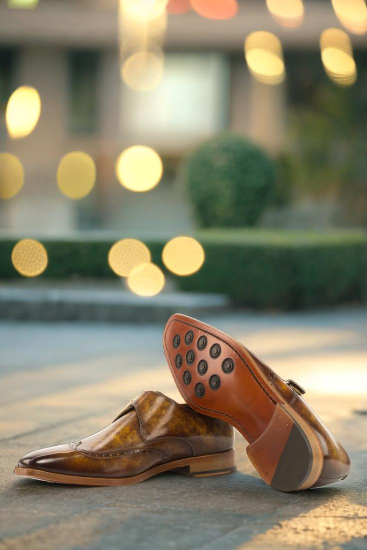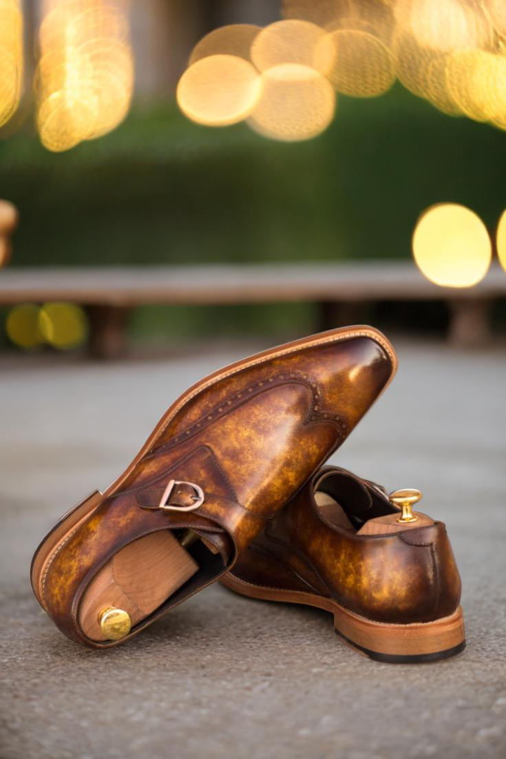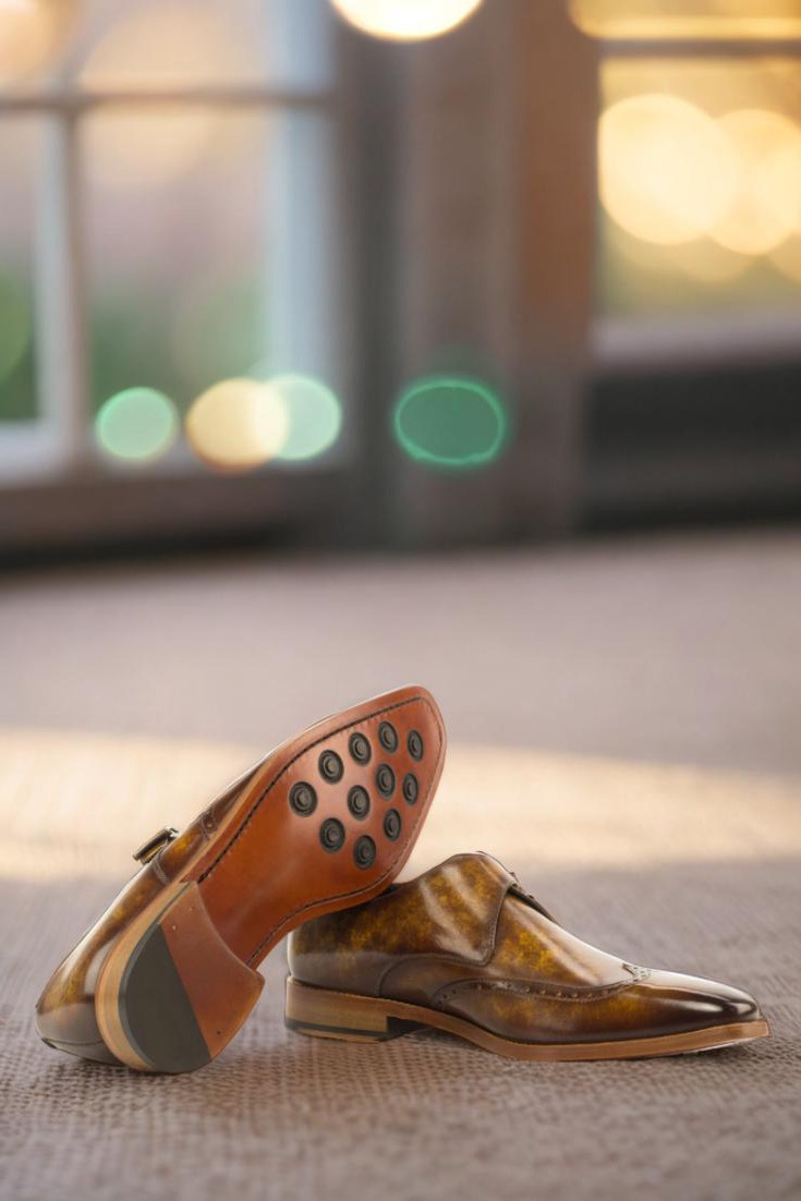 Made from the finest Italian Calf Leather, each pair of the Cicero Ave. Single Monk No. 3754 features a captivating Cognac Marbled Hand Patina. This exquisite detail adds depth and character to the wingtip, vamp, and quarters. You won’t find another shoe quite like it.