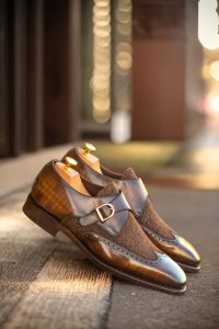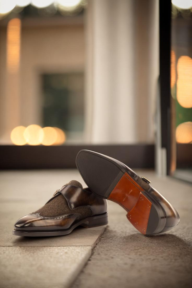 Introducing the epitome of style and craftsmanship – The Cicero Ave. Single Monk No. 4146 from Robert August. This shoe is a masterful fusion of Italian design and Spanish handcrafting, resulting in a truly unique and luxurious piece.