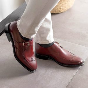 Take on the day with style and confidence in The Cicero Ave. Single Monk No. 5591, created by Robert August just for you! Every detail of this beautifully constructed shoe has been carefully crafted by hand to make sure you look and feel your best. From the rich burgundy box calf leather uppers to the squared-nickel buckles and brown calf lining, this shoe oozes luxurious sophistication. With its Brown Hand-Painted Leather/Rubber sole and supportive Black Country Welt tread, it feels as good as it looks. Completed with the 773 Last featuring a Slightly Squared Toe and iconic Goodyear Welt Construction for superior resilience, The Cicero Ave. Single Monk No. 5591 from Robert August is the perfect combination of classic styling and mindful quality – perfect for making a statement wherever you go!