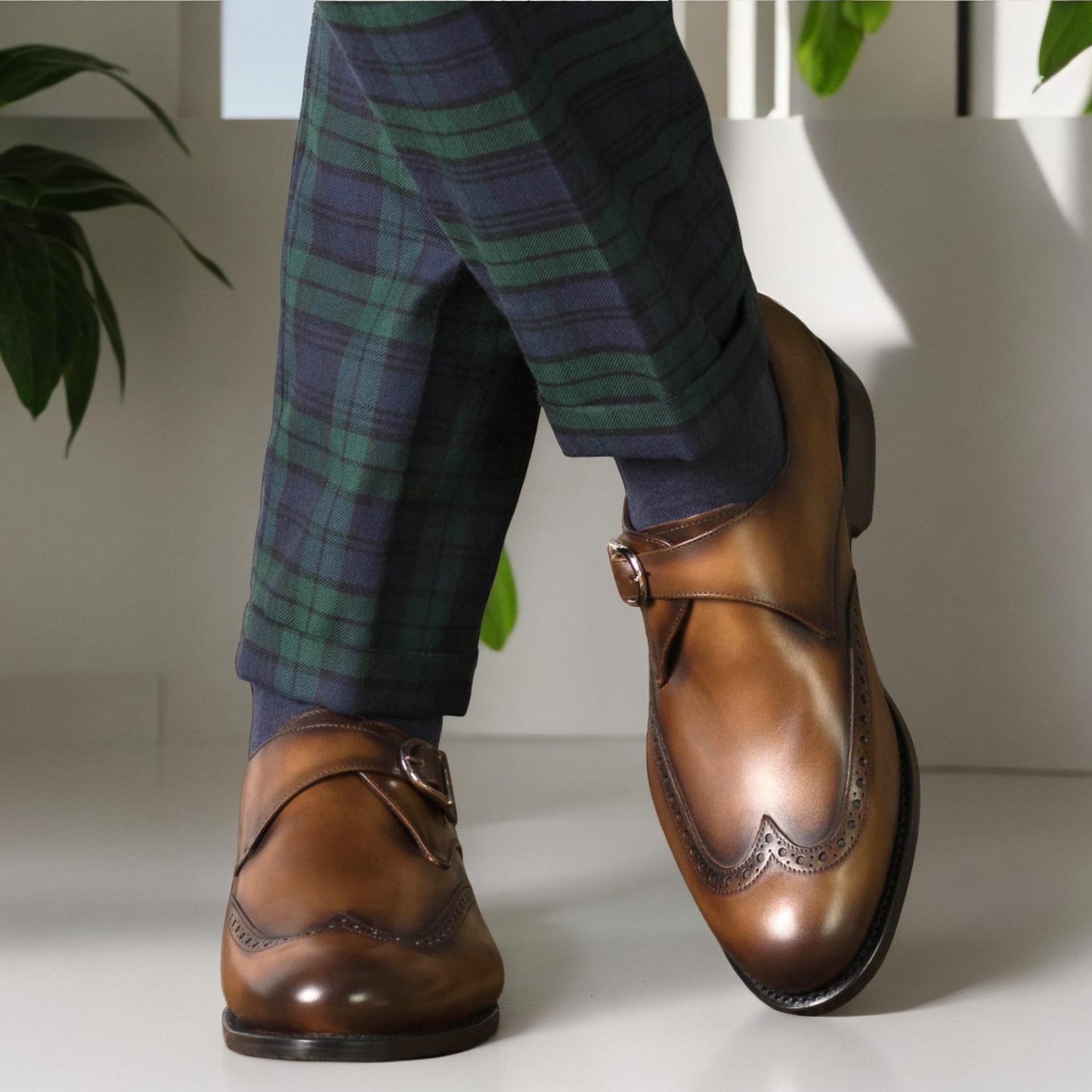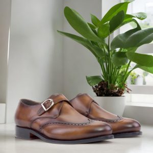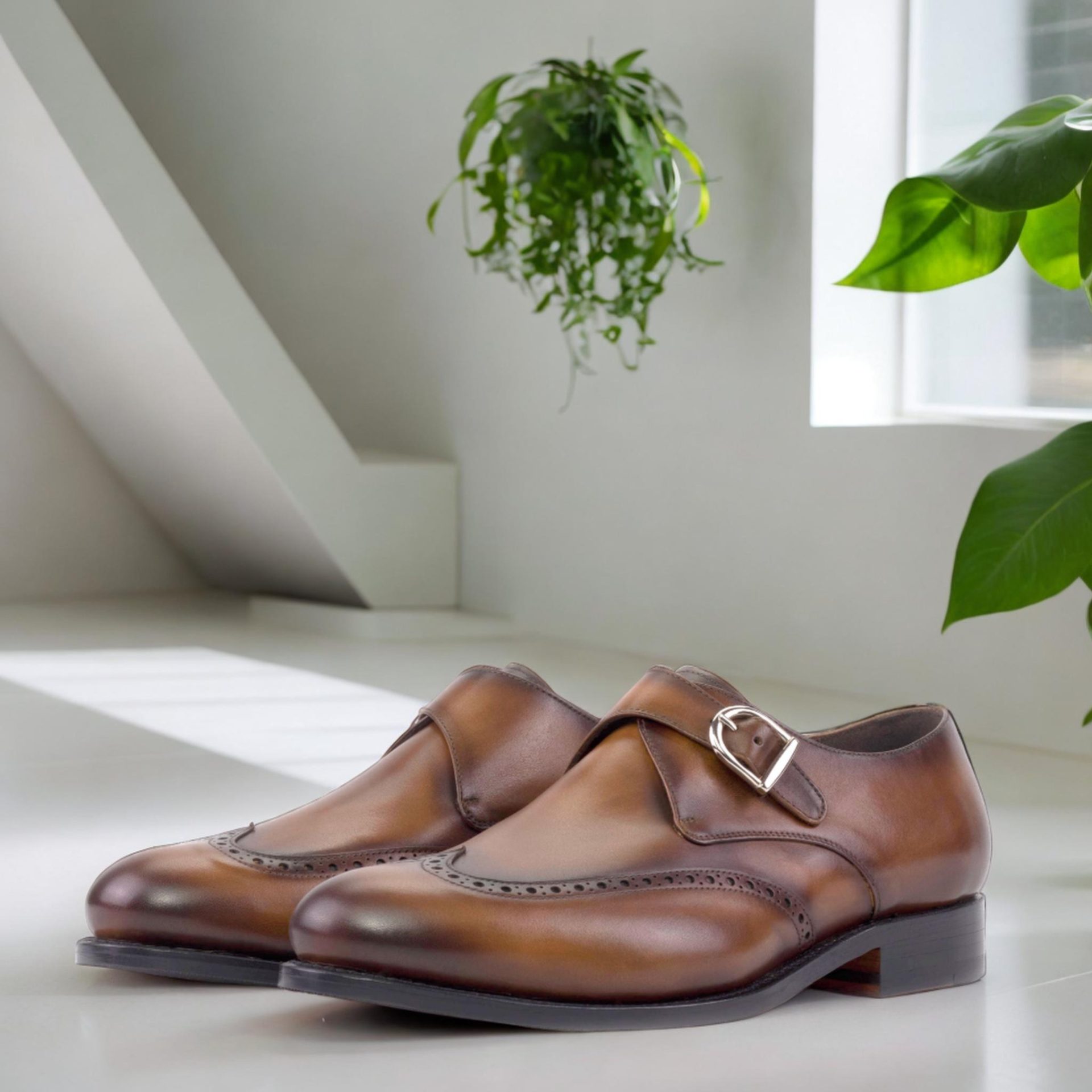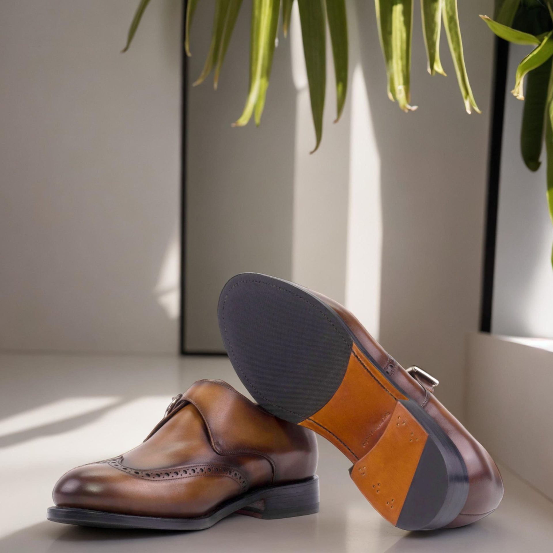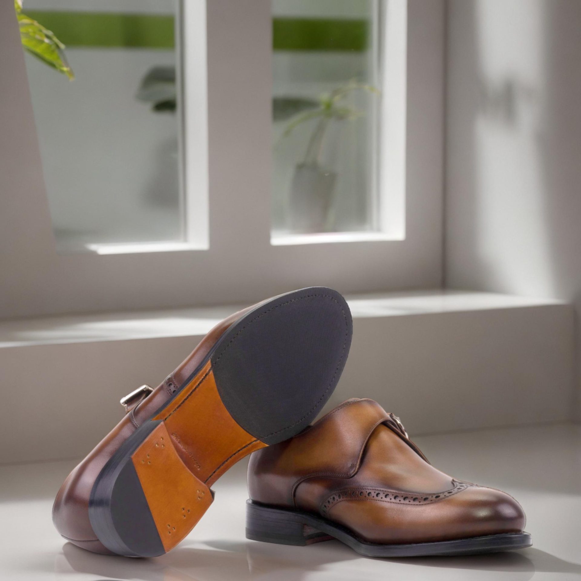 The Cicero Ave. Single Monk No. 5741EX delivers sophisticated style built to last. Crafted from medium brown painted calf leather with subtle burnishing, these shoes develop character with each wear while maintaining their refined appearance. The single monk strap design with rounded nickel buckle provides both security and timeless elegance that works equally well with tailored suits or elevated casual wear.