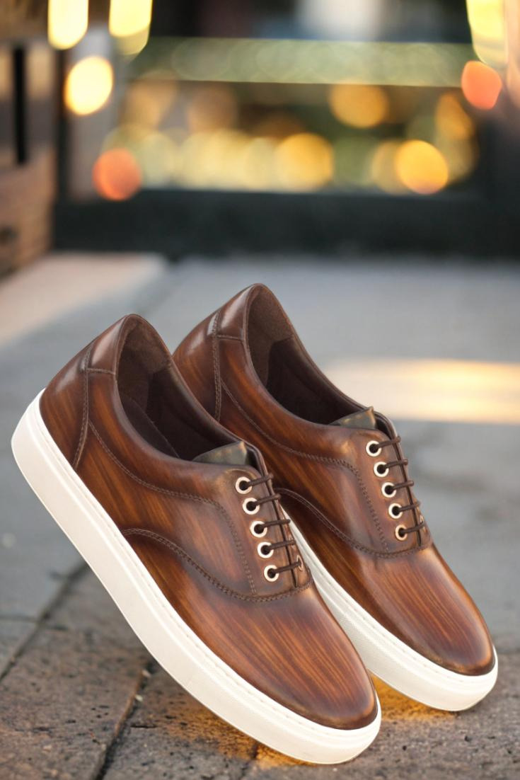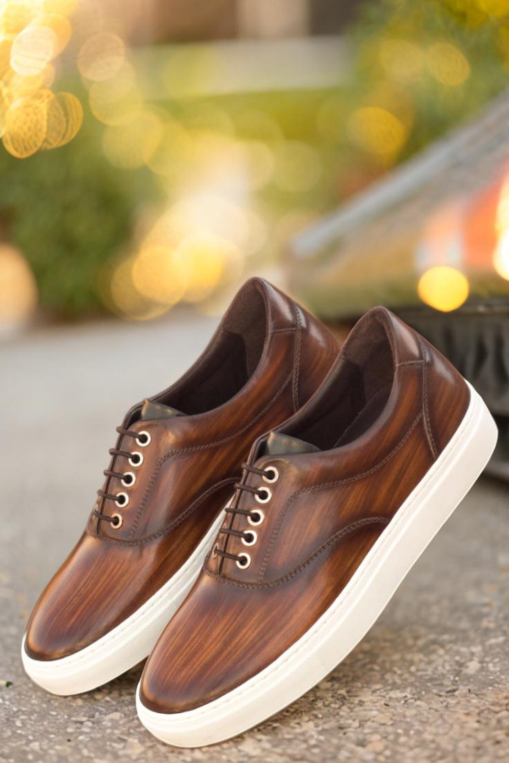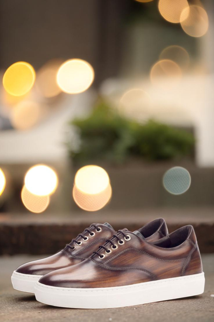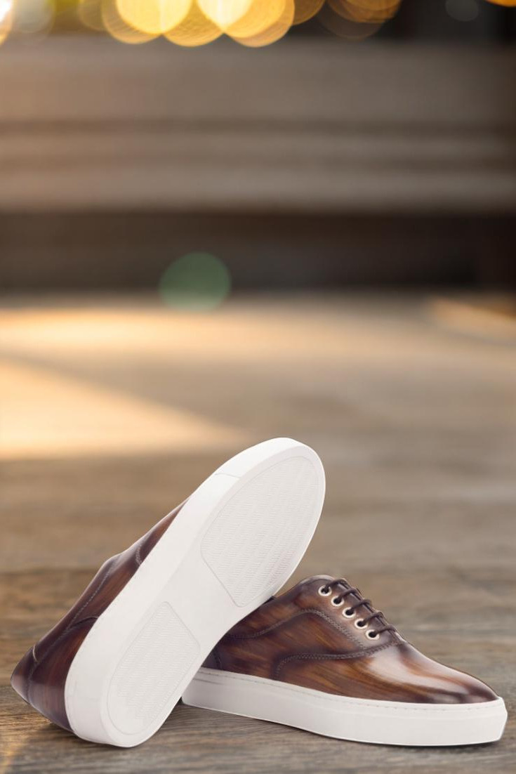The Ridge Ave. Sneaker No. 3369 features Italian Calf Leather uppers in a rich brown hue with a hand patina finish, giving it a unique and classic appeal. The Original patina style adds a touch of rugged sophistication, making it the perfect choice for any occasion.