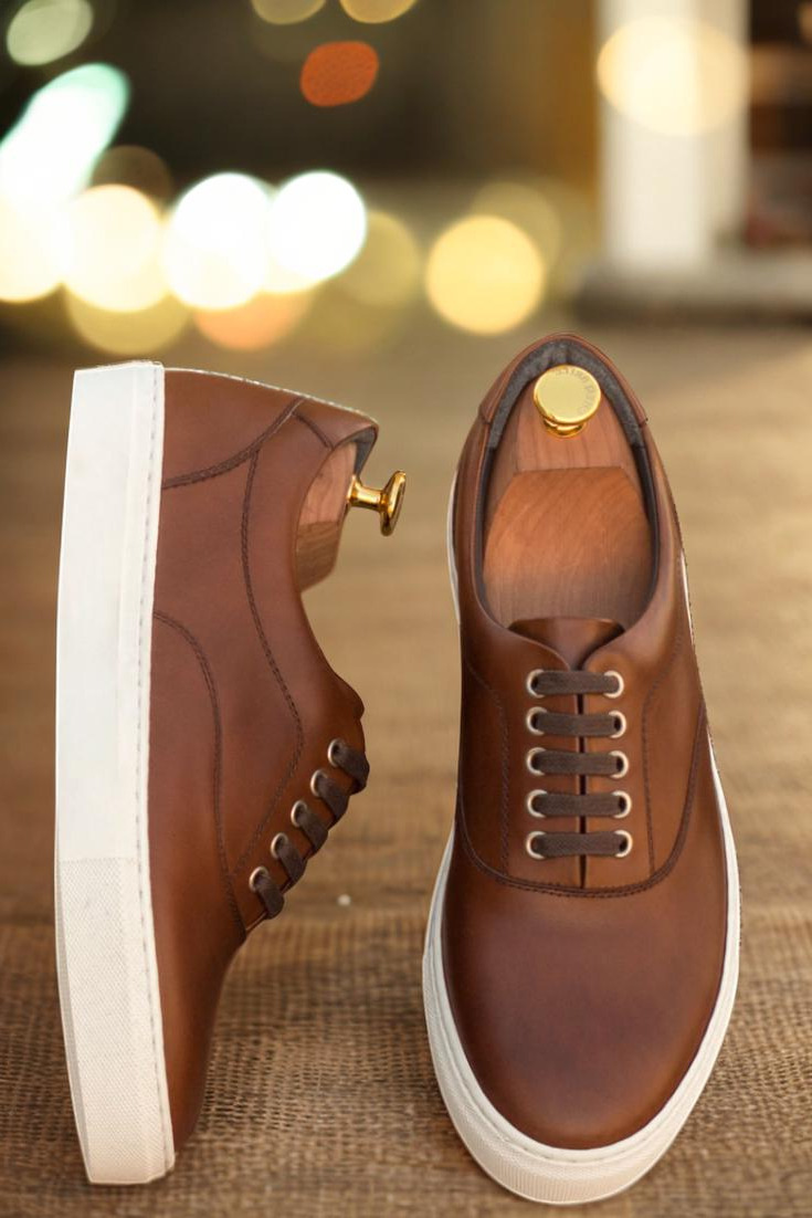 With uppers made from premium medium brown painted calf leather, these sneakers exude a sense of understated elegance. The eyelets, crafted from sleek nickel, add a touch of sophistication and durability to the design. Complimenting the overall look are the rich brown laces, perfectly coordinating with the uppers to create a cohesive and sleek appearance.