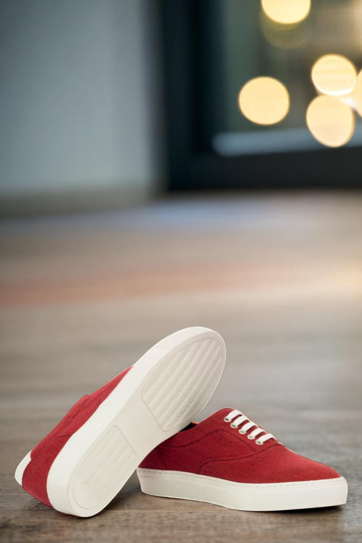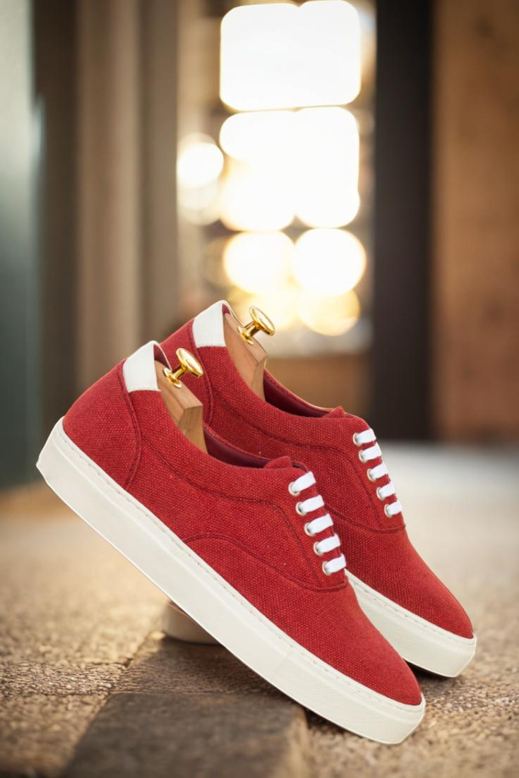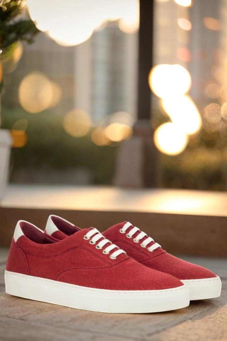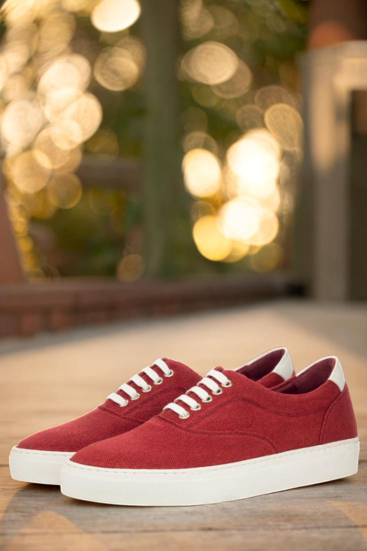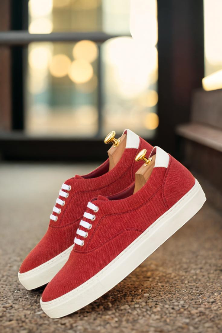 Introducing the latest addition to the Robert August collection, The Ridge Ave. Sneaker No. 3466. This sleek and stylish sneaker boasts a combination of red linen and white nappa leather uppers, giving off a cool and confident vibe. The nickel eyelets and white laces add just the right amount of detail without overpowering the overall design.