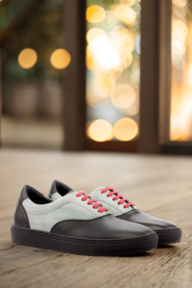The sleek black Nappa leather upper is accented with luxurious light grey kid suede, creating a sophisticated look that will elevate any outfit. The nickel eyelets add a touch of urban edge, while the vibrant red laces make a bold statement.