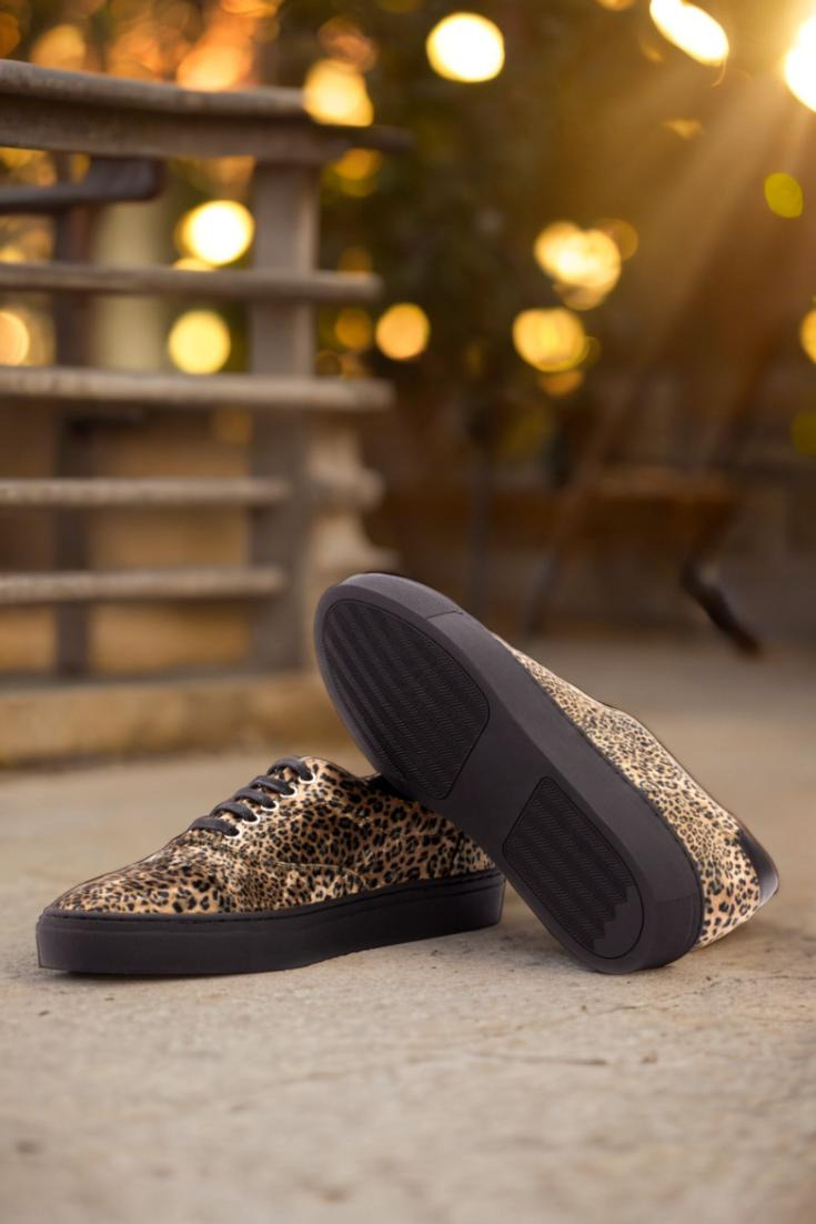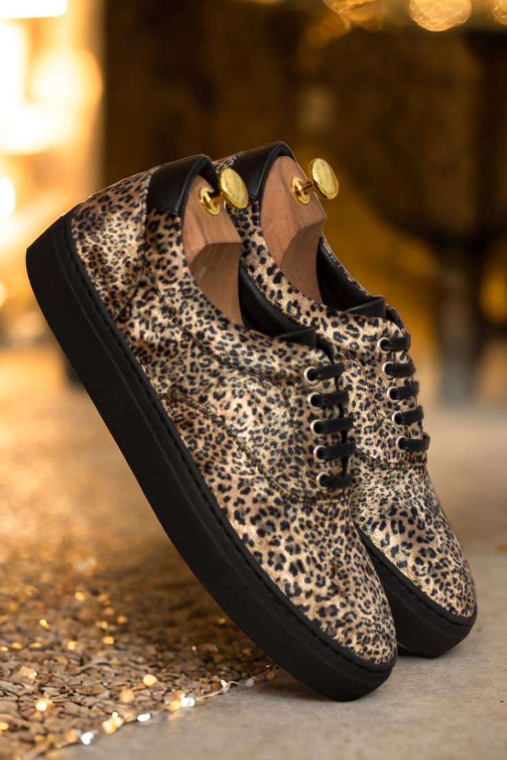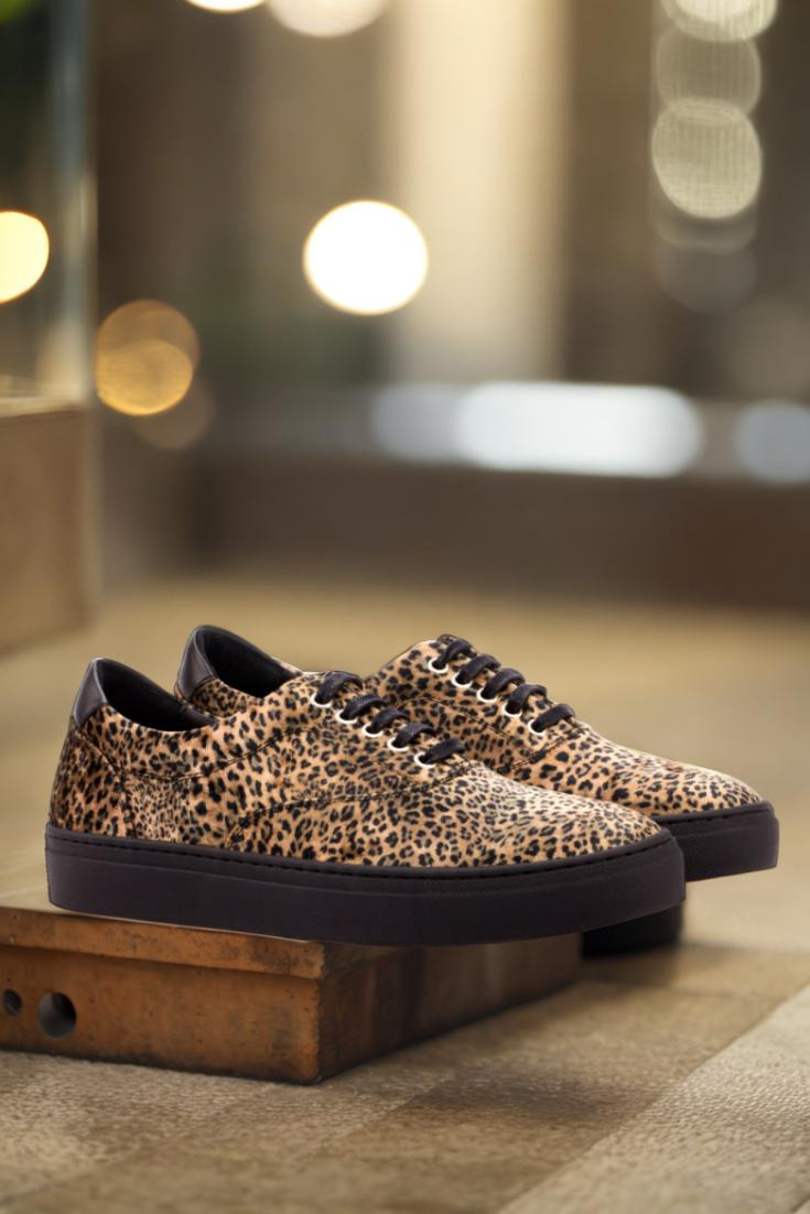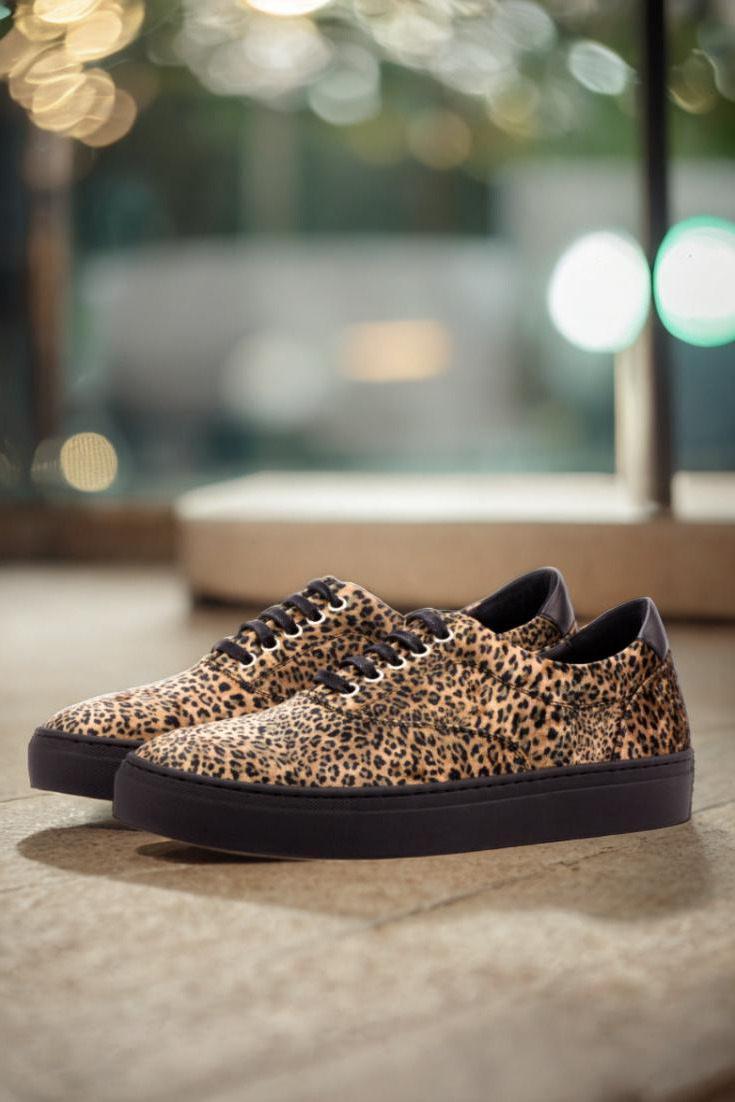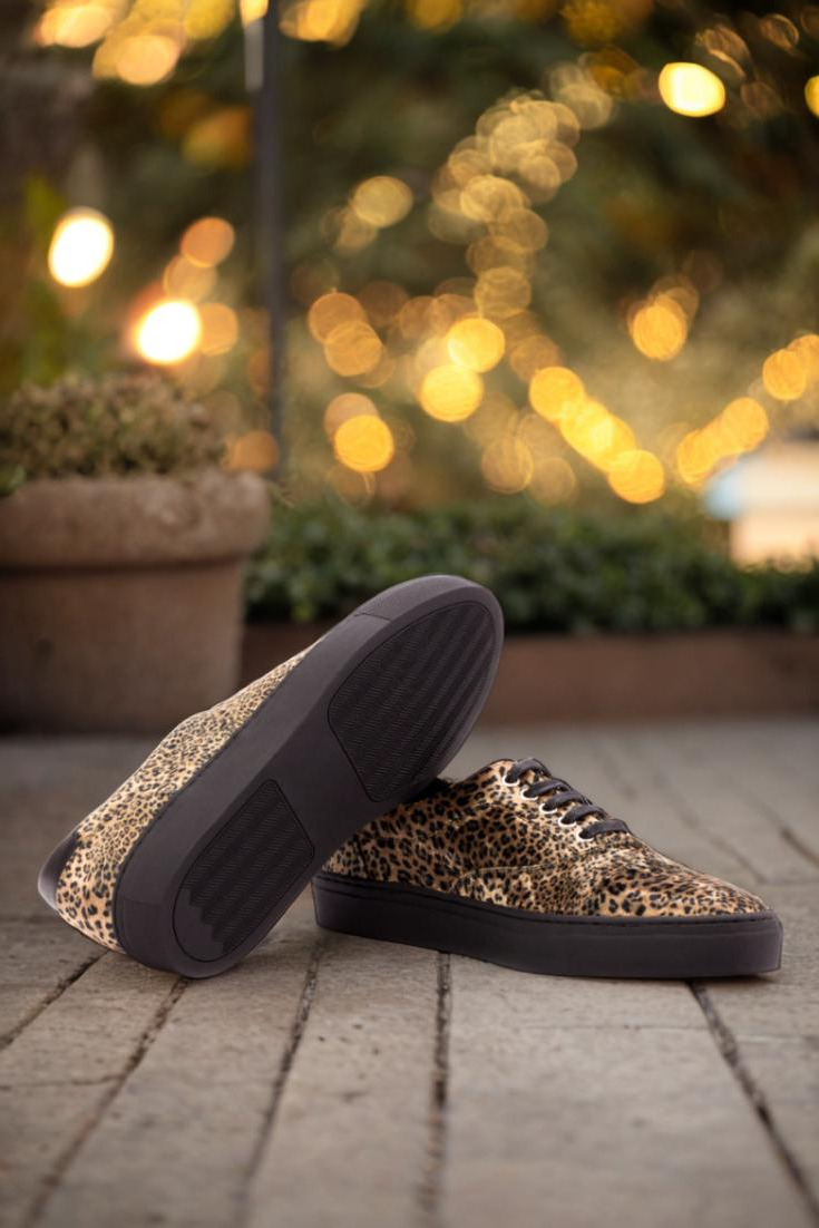 Crafted with attention to detail, the uppers of these sneakers are made from a luxurious leopard print flannel that adds a touch of boldness to your footwear game. The black nappa leather provides a sleek and sophisticated contrast, elevating the overall look.