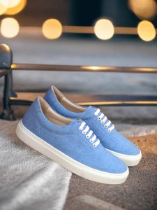 Crafted with precision and expertise, each pair of Ridge Ave. Sneakers is handmade in Spain to ensure the highest quality. The attention to detail can be seen in every aspect of this shoe, from the blue linen toe cap, sides, tongue, and back, to the nickel eyelets and white laces. The contrast of these elements creates a unique and modern look that is bound to turn heads.