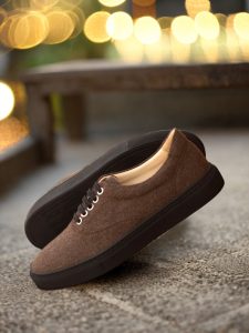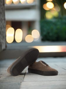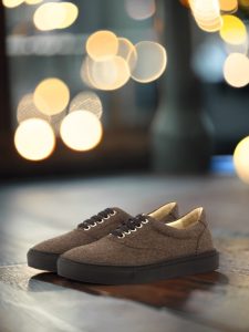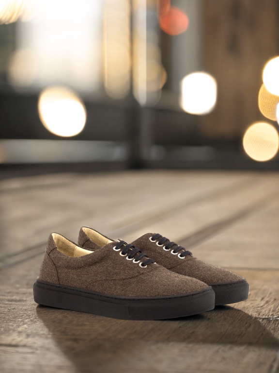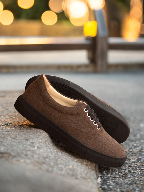Let’s break down the details that make these sneakers a must-have in your wardrobe. The uppers are made from a luxurious brown flannel material, giving them a sophisticated yet versatile look. The eyelets are crafted from nickel, adding a touch of elegance to the overall design. And to tie it all together, we’ve opted for sleek black laces.