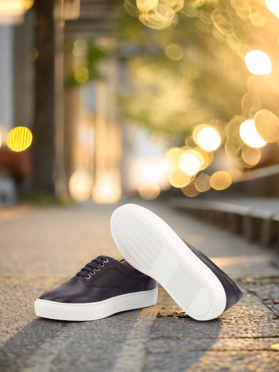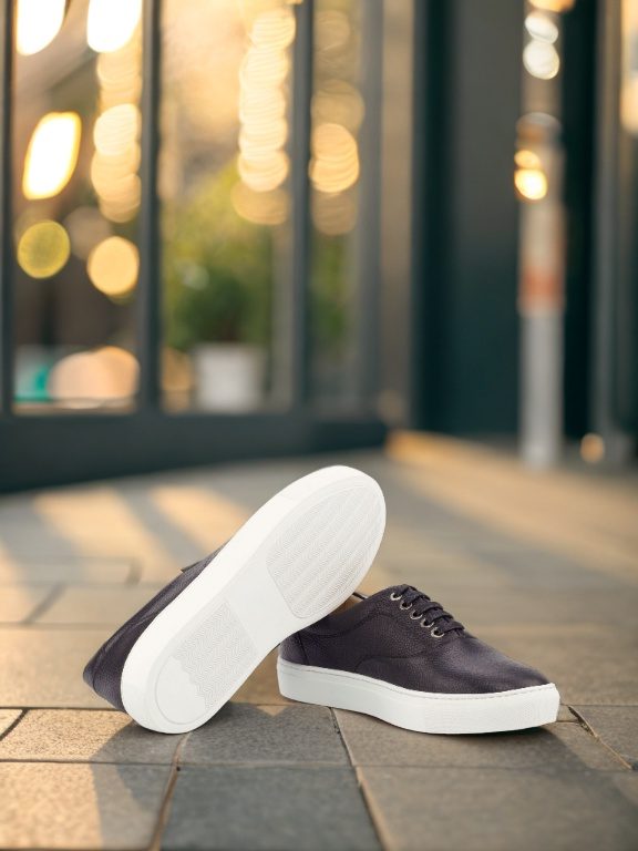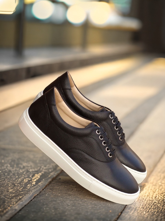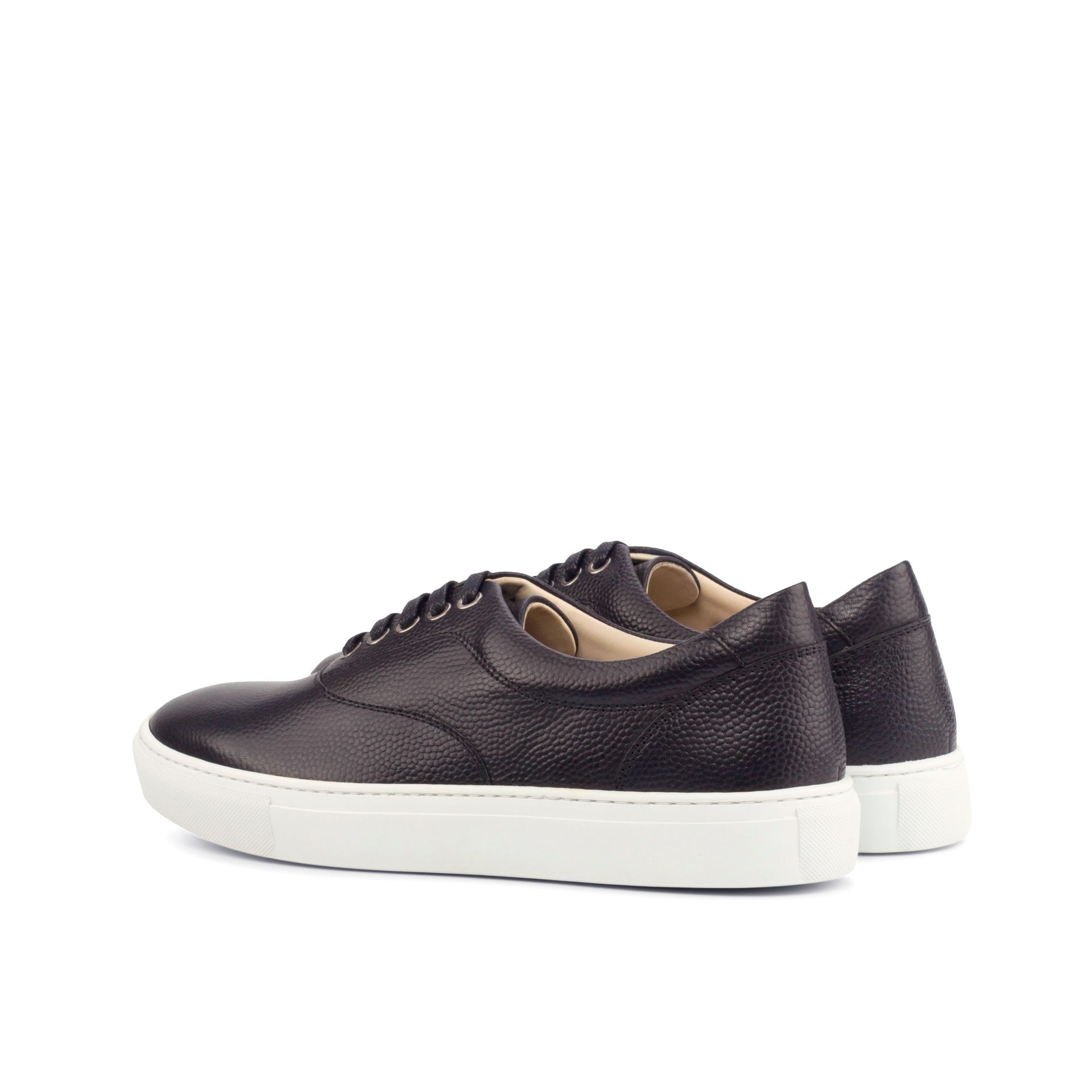With its black pebble grain leather toe cap, sides, tongue, back, and heel tab, this sneaker exudes a sleek and refined look. The nickel eyelets and black laces add a touch of edginess, making it the perfect choice for both formal and casual occasions.