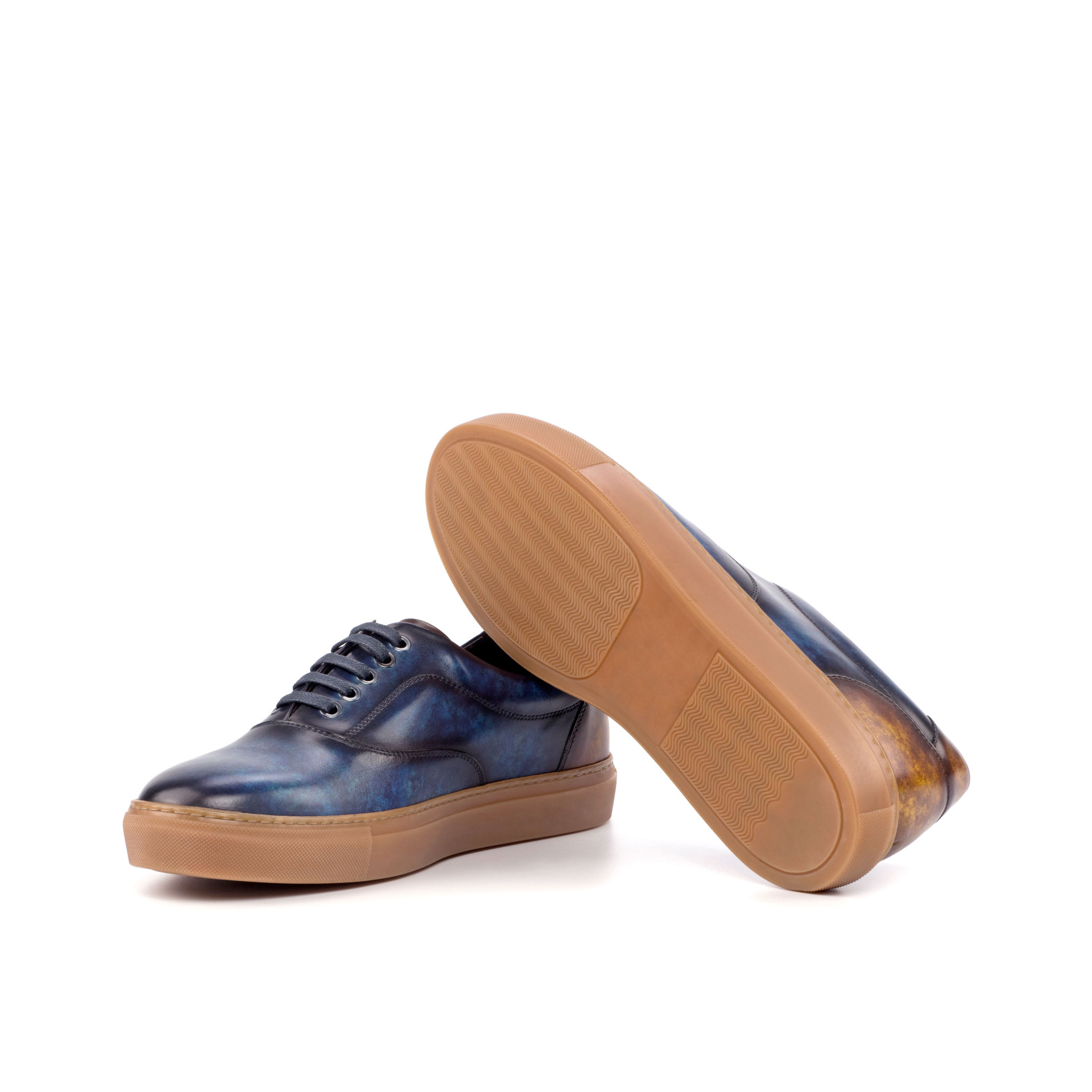 Introducing The Ridge Ave. Sneaker No. 4504 from the iconic Robert August brand. This sneaker is the epitome of style and function, for those who value quality and craftsmanship. Made with Italian Calf Leather, it boasts a unique Denim Blue and Cognac hand patina, adding exquisiteness to its already sleek design.