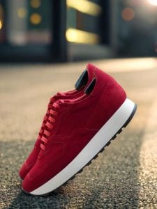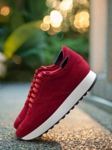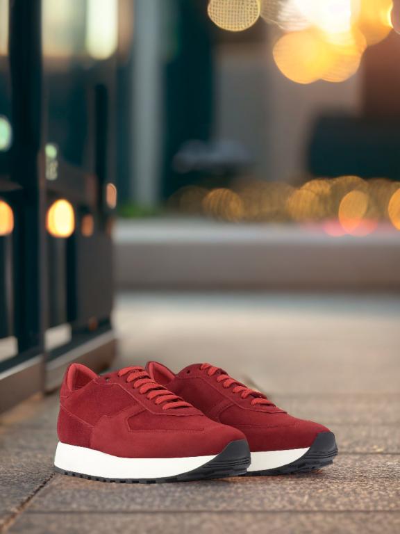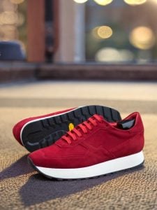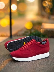At first glance, the striking red color of this sneaker catches your eye. Made from the finest quality red kid suede, the toe box, eyestay, tongue, base, back, and heel tab of the Adams Ave. Sneaker No. 8235 are all beautifully crafted to provide maximum comfort and support for your feet.