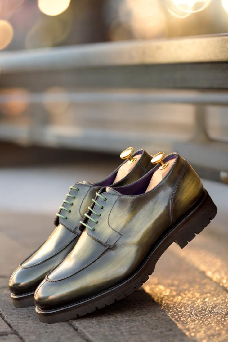 Introducing The Belden Ave. Split Toe Derby No. 5788 – where impeccable craftsmanship meets timeless style. Crafted with utmost care, this extraordinary footwear is designed to elevate your look to new heights. Made from luxurious Italian Calf Leather with a stunning Khaki Original Hand Patina, these shoes are built to impress and are sure to turn heads wherever you go.