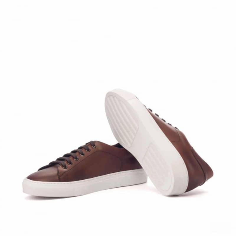 The uppers of this trainer are made with medium brown painted calf leather, giving it a sophisticated yet rugged look. The eyelets are made of graphite, while the laces are brown, creating a cohesive and sleek appearance. The lining is also made of brown calf leather, ensuring maximum comfort for your feet.