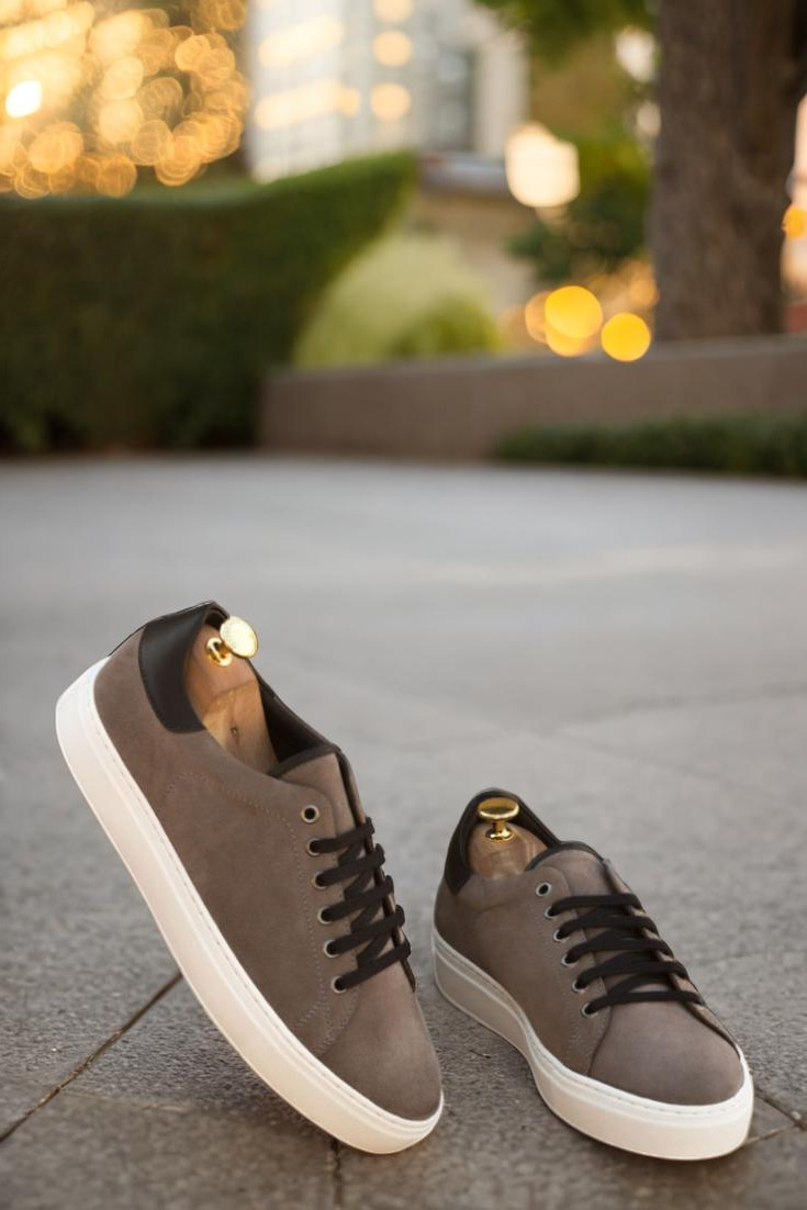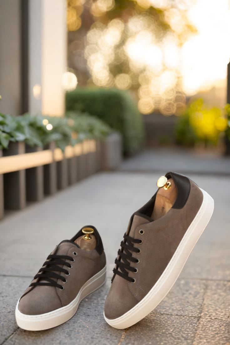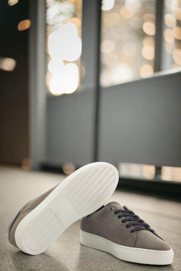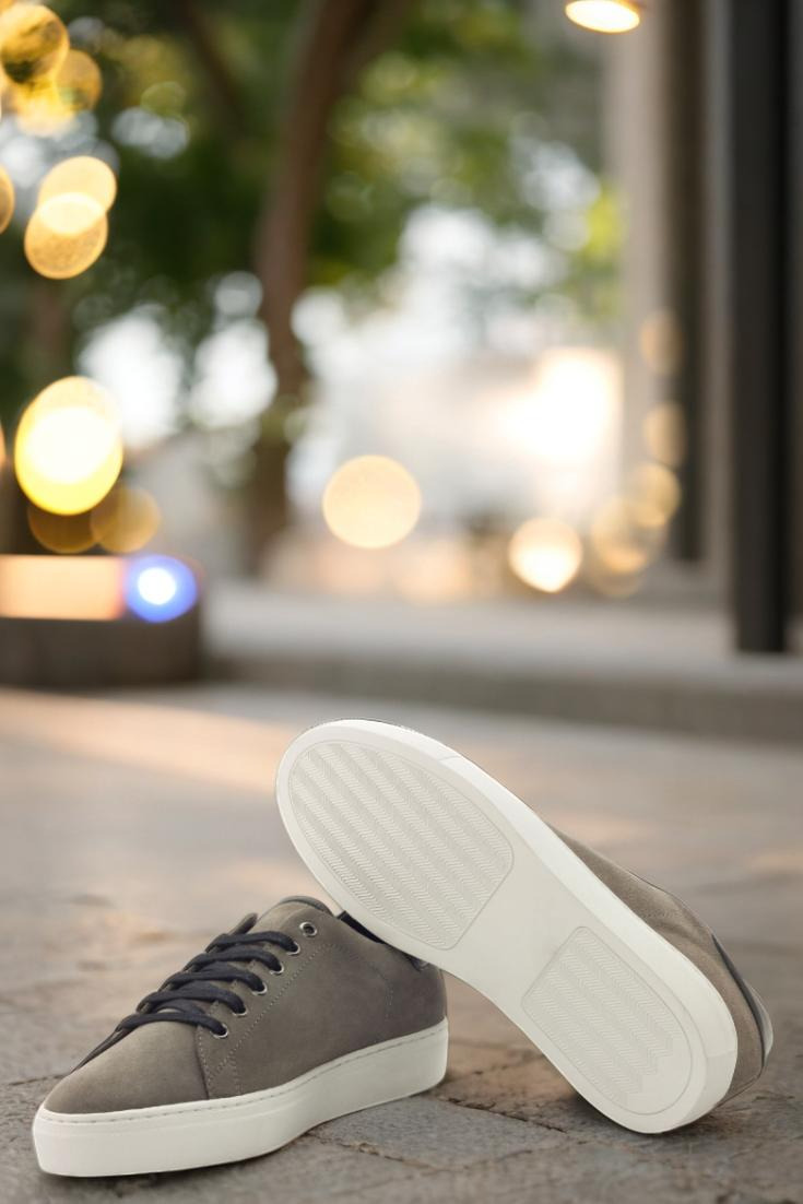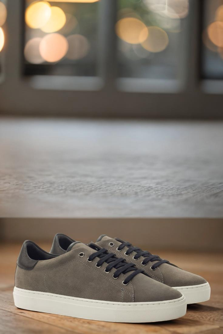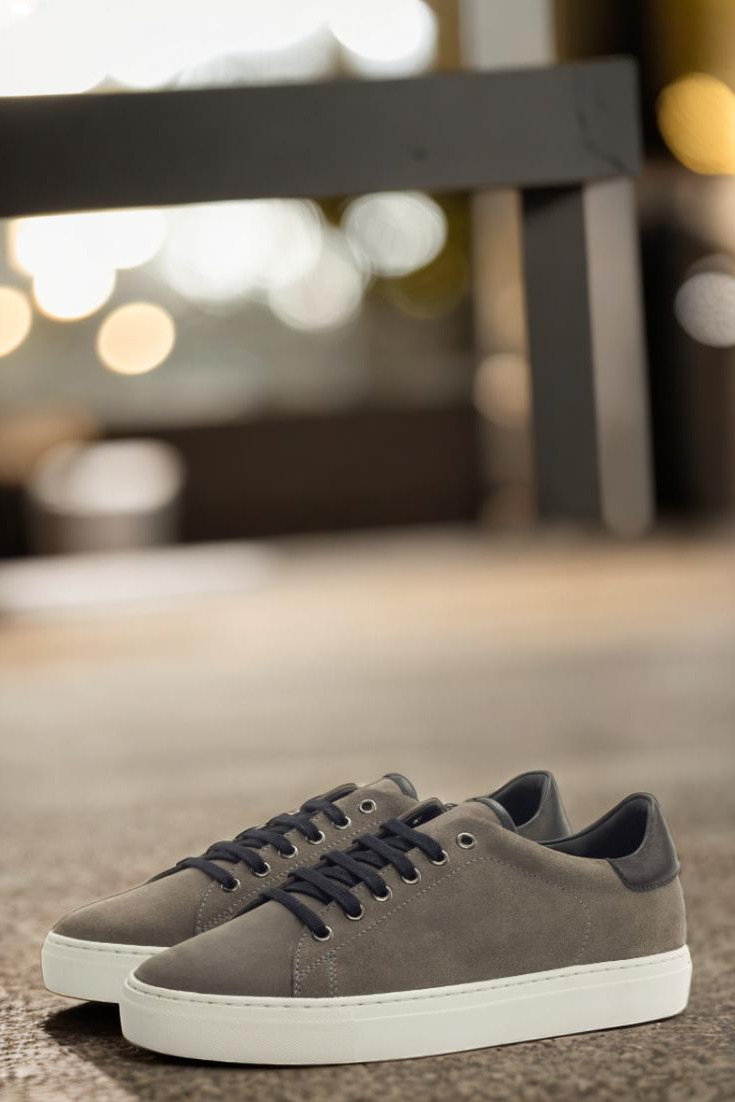 Introducing the Bryn Mawr Ave. Trainer No. 3143 from Robert August – the epitome of effortless style and endless customization options. Handcrafted in Spain with the utmost attention to detail, these trainers are crafted with a sleek combination of grey luxe suede and nappa leather uppers, perfectly complemented by graphite eyelets and black laces for a streamlined look.