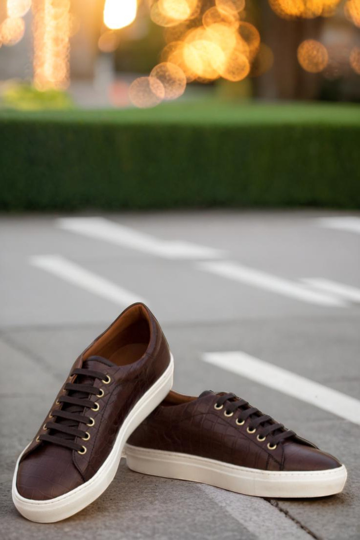 For those seeking a classic yet contemporary trainer, look no further than the Bryn Mawr Ave. Trainer No. 3188 from Robert August. Made with impeccable craftsmanship in Spain, these trainers feature a stunning combination of brown croco and dark brown box calf leather uppers that exude sophistication.