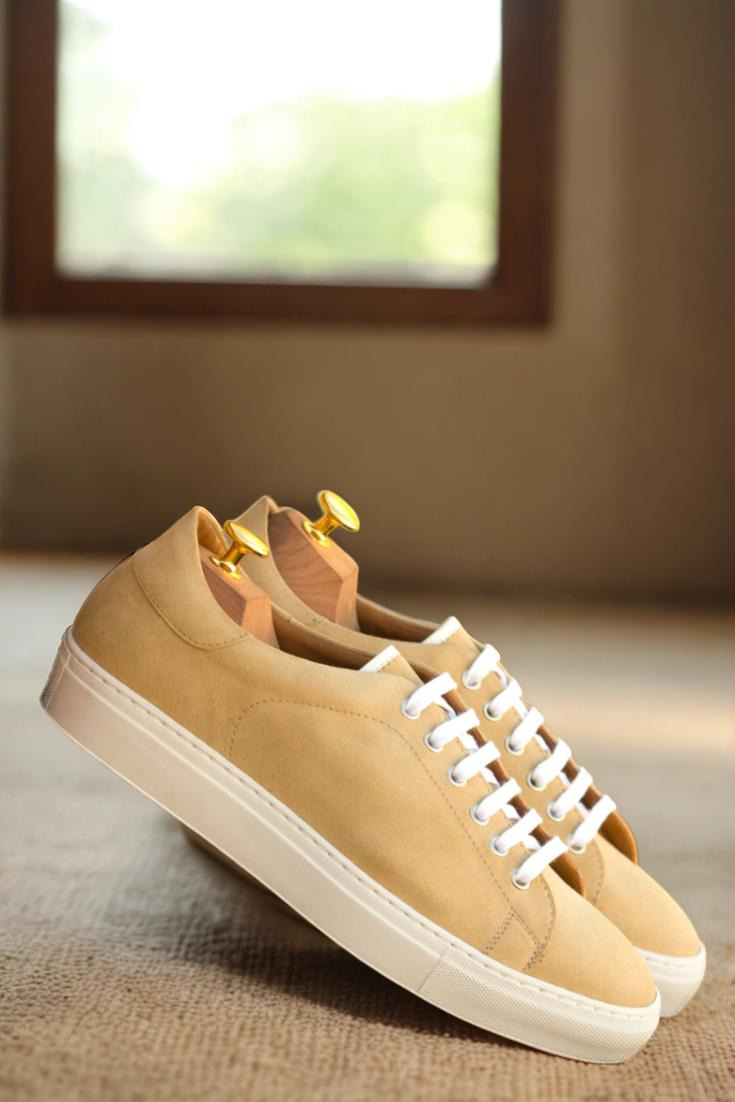 But it’s not just the materials that make The Bryn Mawr Ave. Trainer No. 3436 a must-have. Our team at Robert August has carefully crafted this shoe to be the ultimate combination of style and functionality. The sand and white colorway creates a versatile look that pairs well with any outfit, whether you’re dressed up for a night out or keeping it casual on the weekend.