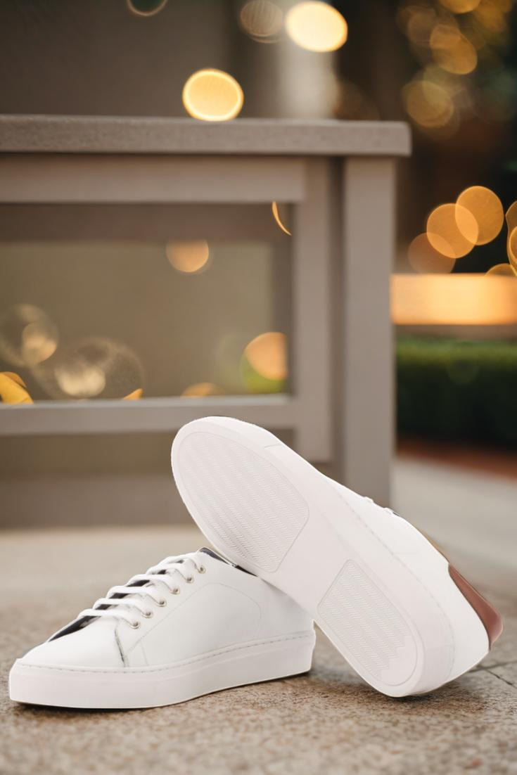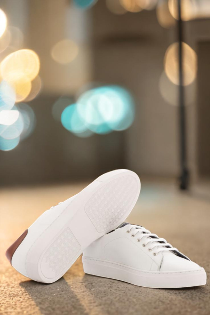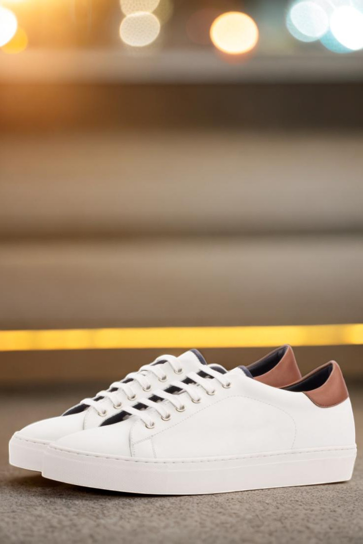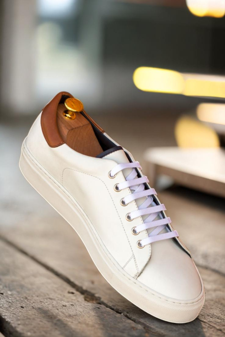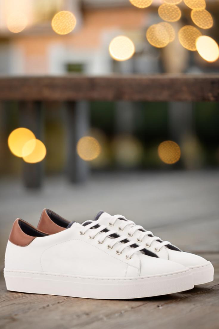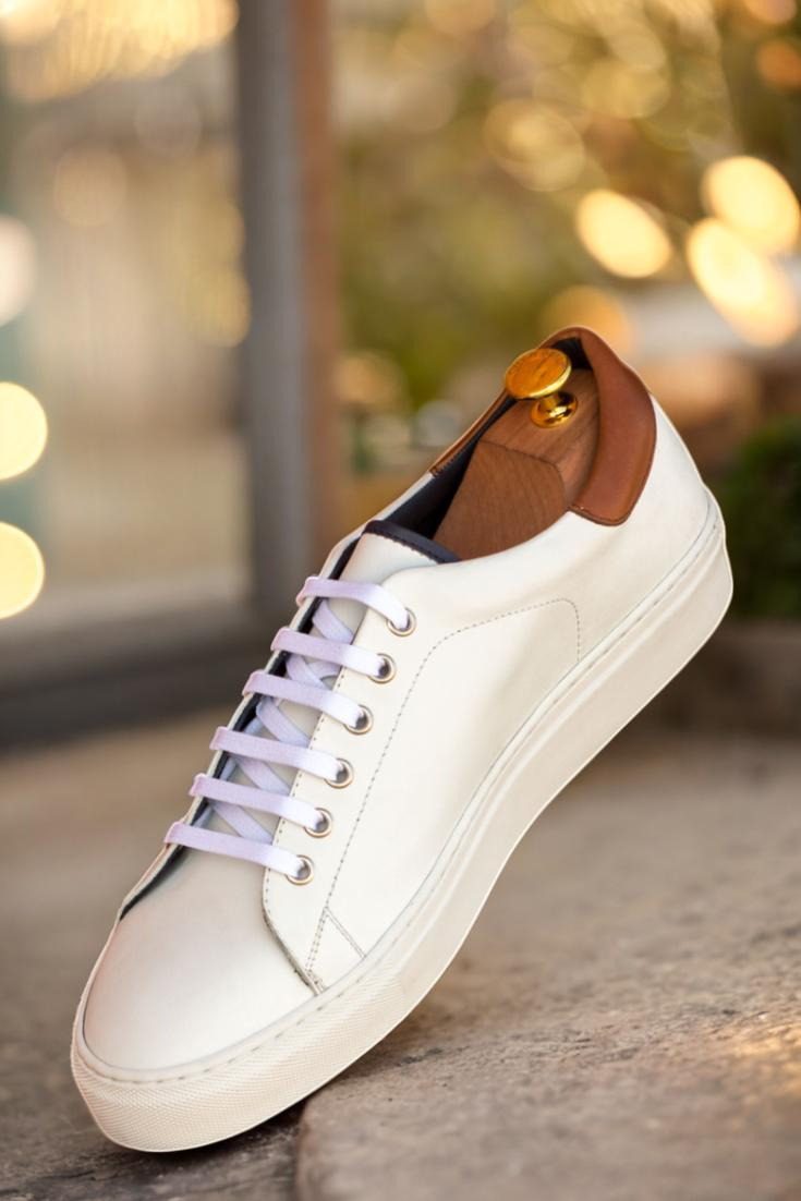 Introducing the Bryn Mawr Ave. Trainer No. 3486, the latest addition to the Robert August collection. This trainer is the epitome of sleek and stylish, with its white nappa leather uppers and medium brown painted calf trim. It’s a shoe that demands attention, with its unique combination of colors that will make heads turn wherever you go.