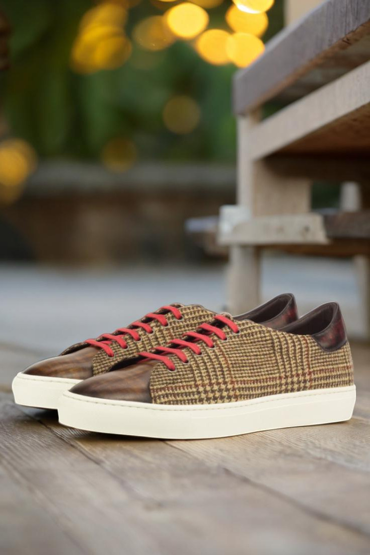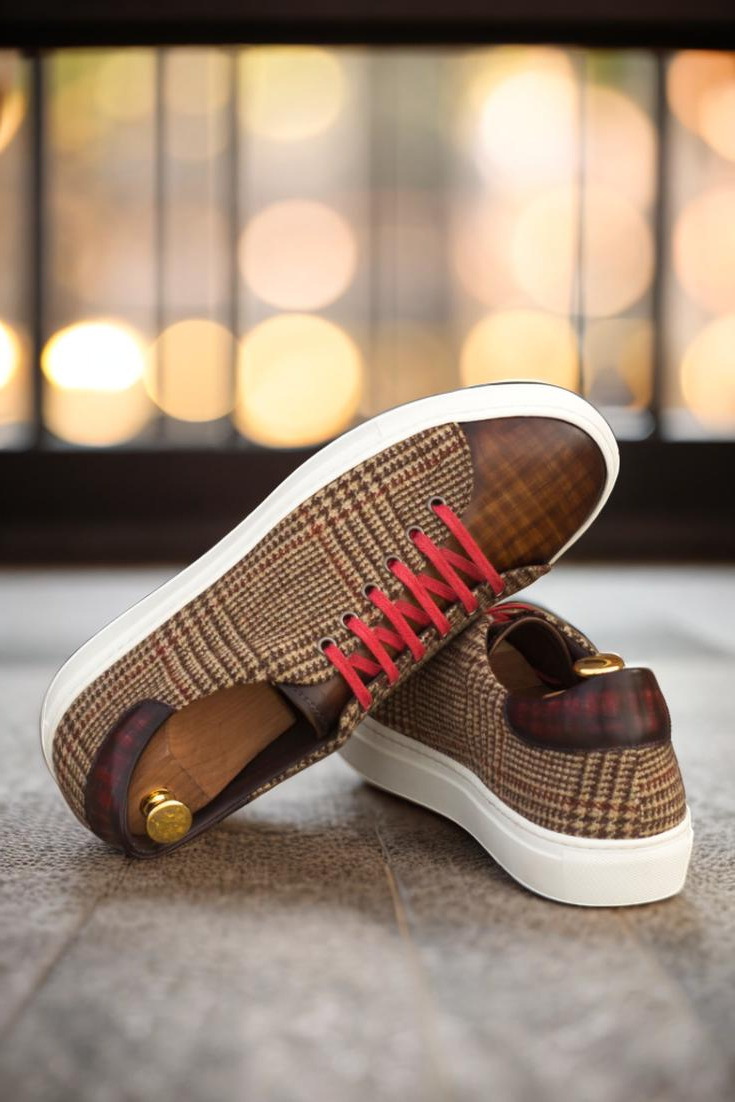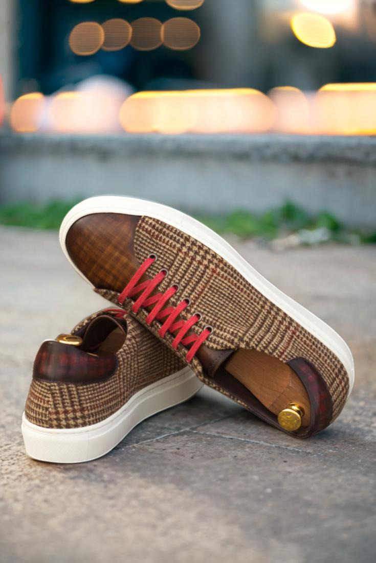 Introducing the Bryn Mawr Ave. Trainer No. 3785, the perfect fusion of sophistication and casual style brought to you by none other than Robert August. Handcrafted in Spain with meticulous attention to detail, these trainers boast a refined and polished look that is sure to elevate any outfit. The uppers are made with exquisite Italian Calf Leather, showcasing a stunning blend of brown and burgundy hues, adorned with a unique hand patina in the elegant Papiro style. But it’s not just about looks, as these trainers are also crafted for comfort. The tongue and lining are made with soft and supple Brown Calf Leather, providing a plush feel against your feet. The eyelets and laces add a touch of street-chic with a sleek graphite finish and striking red color, perfect for making a bold and confident statement. And let’s not forget about the sole – the white cupsole not only provides durability and support, but also adds a crisp and clean touch to the overall design. So why settle for ordinary trainers when you can stand out from the crowd with the Bryn Mawr Ave. Trainer No. 3785 from Robert August. Upgrade your shoe game and step into the world of effortless style and quality craftsmanship. Order now and experience the luxury of the Bryn Mawr Ave. Trainer for yourself.