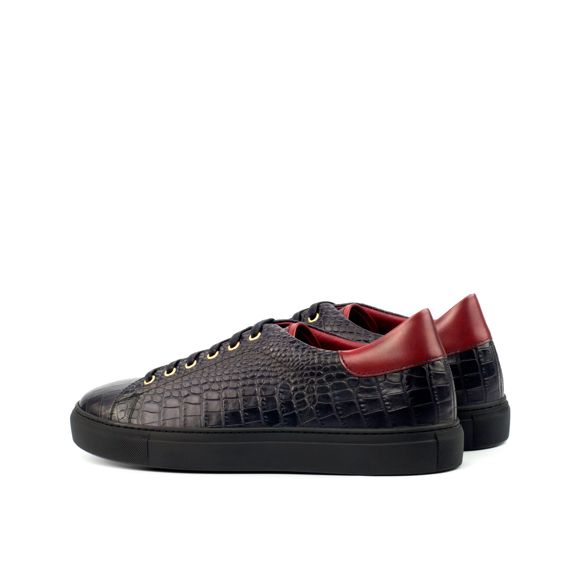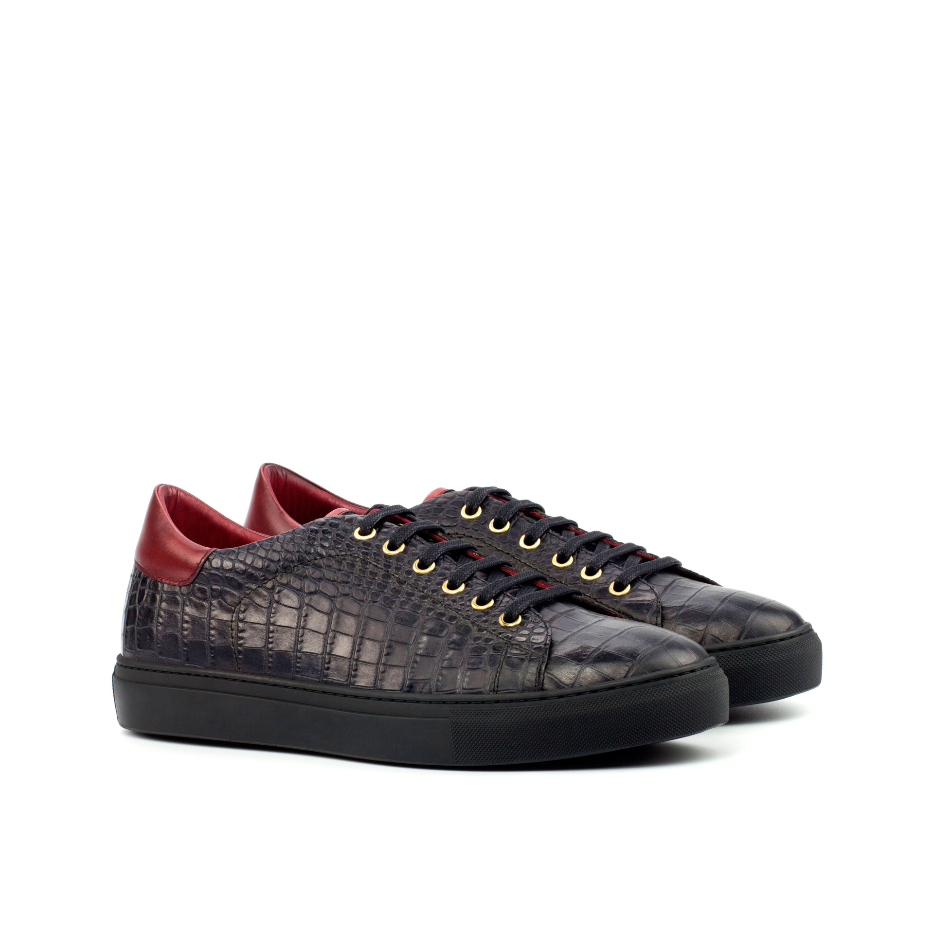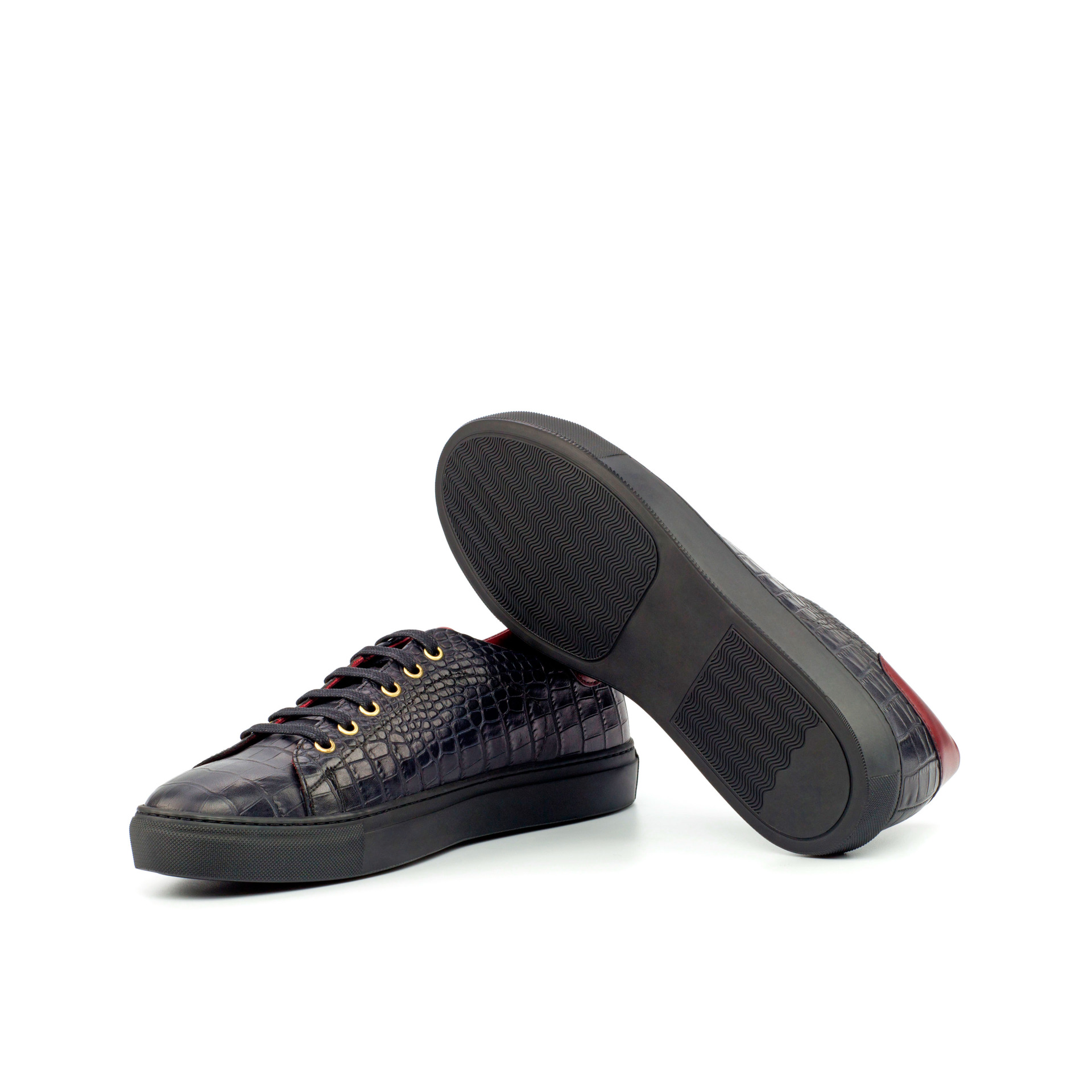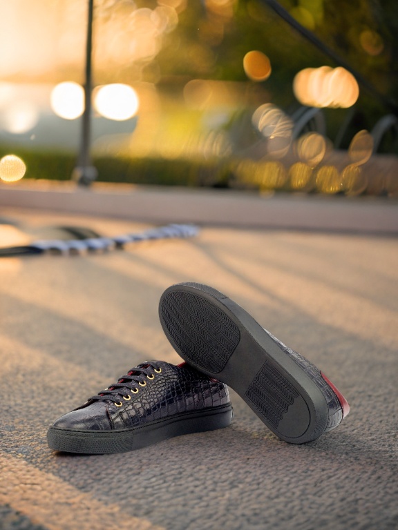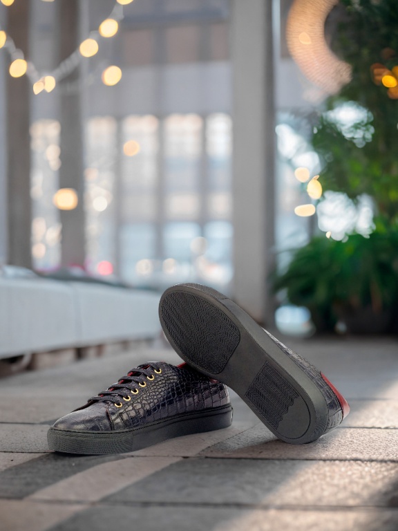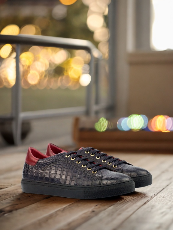 The uppers are made of black croco embossed calf and red painted calf, giving the shoe a unique and eye-catching texture. Adorned with gold eyelets and black laces, this trainer is the epitome of refined simplicity. But don’t be fooled by its minimalistic design, the Bryn Mawr Ave. Trainer No. 4356 is a statement piece that demands attention.