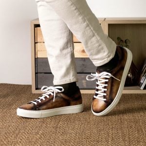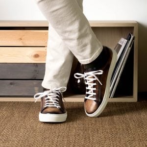Introducing The Bryn Mawr Ave. Trainer No. 5698 — the perfect blend of style, quality and convenience! Whether you’re dashing around town or hosting drinks on the rooftop, this one-of-a-kind shoe is sure to turn heads. Crafted from luxurious Italian leather with a sleek Fire Museum Hand Patina finish, it offers an eye-catching design that’s sure to keep fashionable men looking their best.