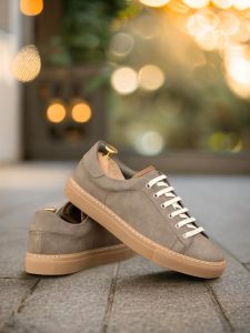 To ensure maximum comfort, we’ve used a khaki microfiber lining that will keep your feet feeling fresh and dry all day long. The caramel rubber cupsole adds not only durability but also a touch of contrast to the overall design, making these trainers a versatile addition to any outfit.