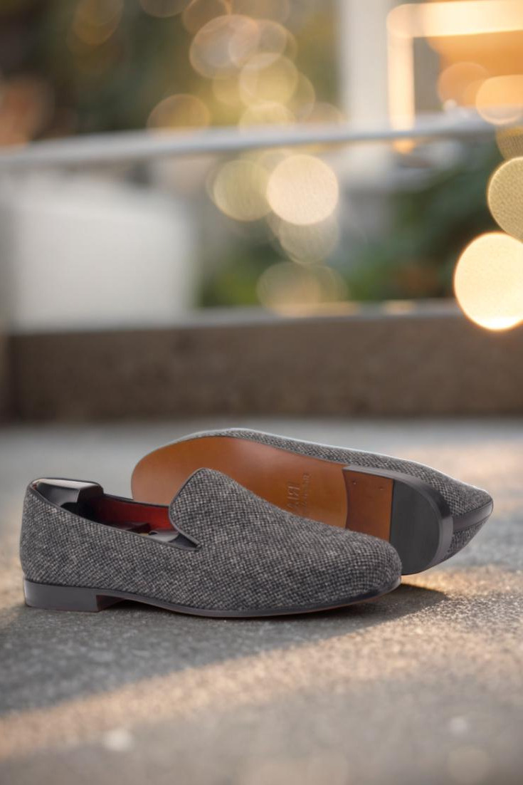 But what sets these loafers apart is the ability to customize them according to your preferences. Not exactly a fan of the black nailhead wool? No problem. With our customization option, you can choose from a variety of materials and colors to create your own unique pair. The possibilities are endless, making these loafers a truly one-of-a-kind piece.