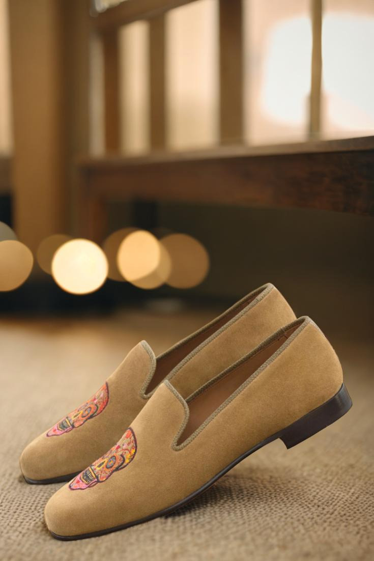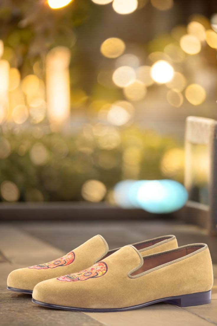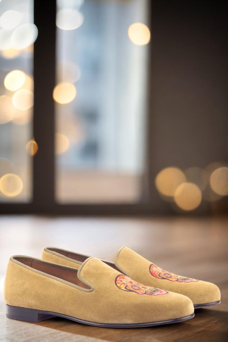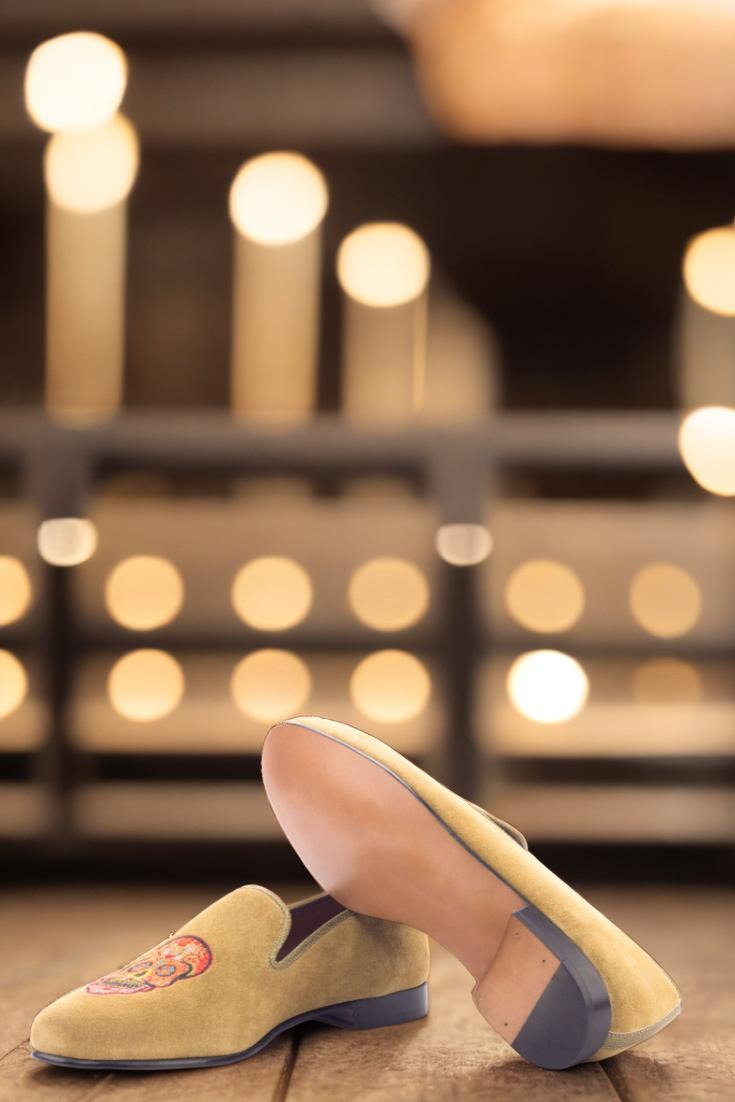 Elevate your style game with The Cermak Rd. Wellington Loafer No. 3108 from Robert August. Handcrafted in Spain, each pair is meticulously constructed with the finest materials to ensure top-quality and long-lasting comfort. The uppers are made from luxurious camel suede, while the trim is adorned with olive painted full grain leather for a touch of sophistication. And let’s not forget about the unique and eye-catching sugar skull embroidery, adding just the right amount of edginess to this classic loafer.