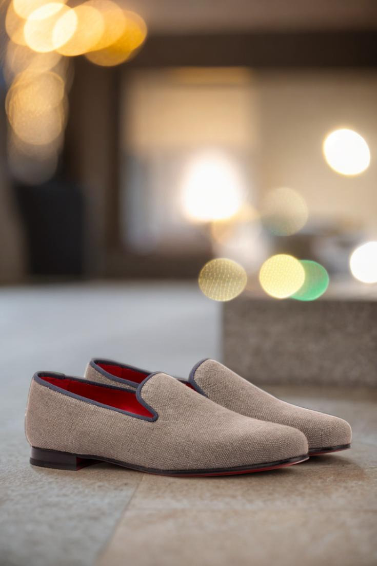 Elevate your style game with The Cermak Rd. Wellington Loafer No. 3549 from Robert August. This sleek and sophisticated loafer is crafted with the finest materials, making it a must-have for any fashion-forward individual. The uppers are made from a mesmerizing grey linen that is both stylish and breathable, keeping your feet cool and comfortable all day long. The dark grey grosgrain trim adds a touch of refinement and contrast to the overall look, making this loafer a versatile addition to any wardrobe.