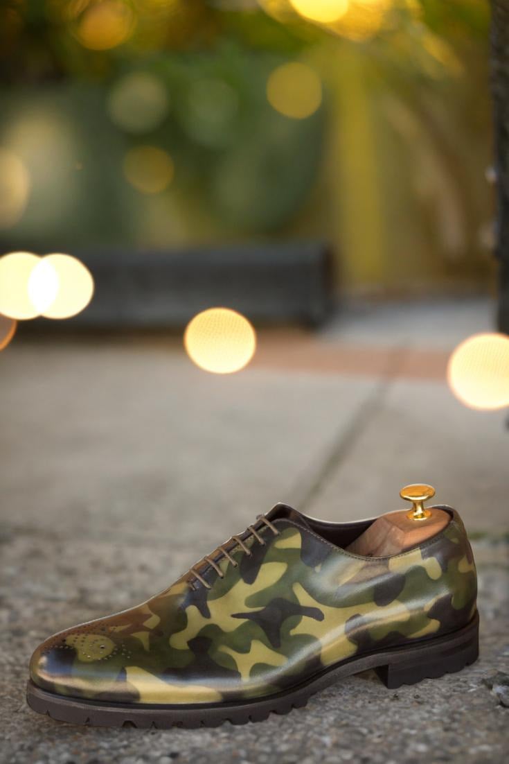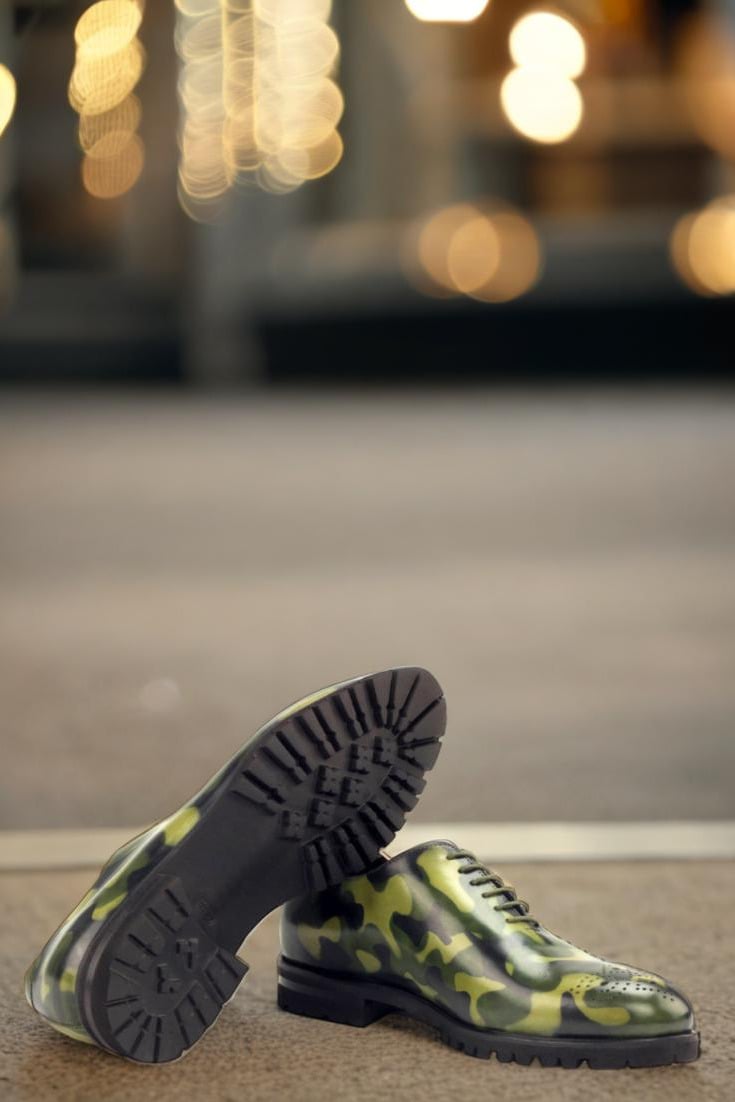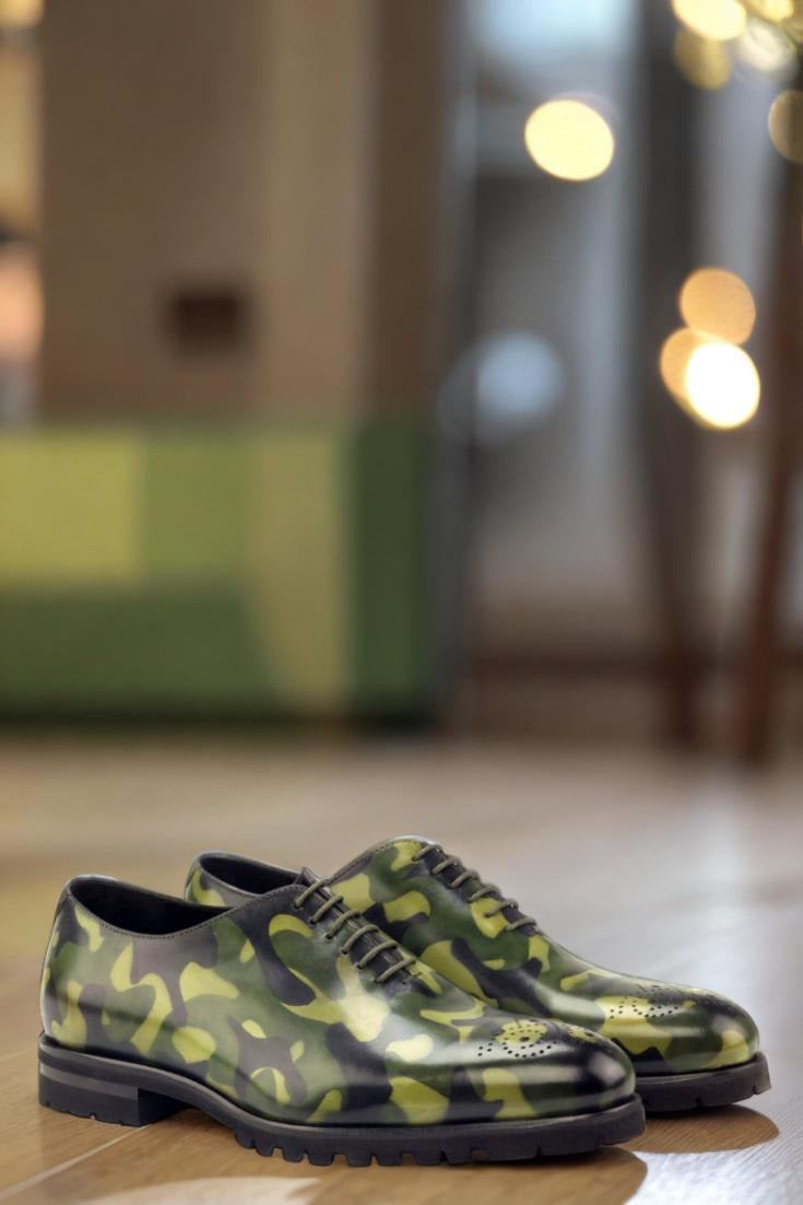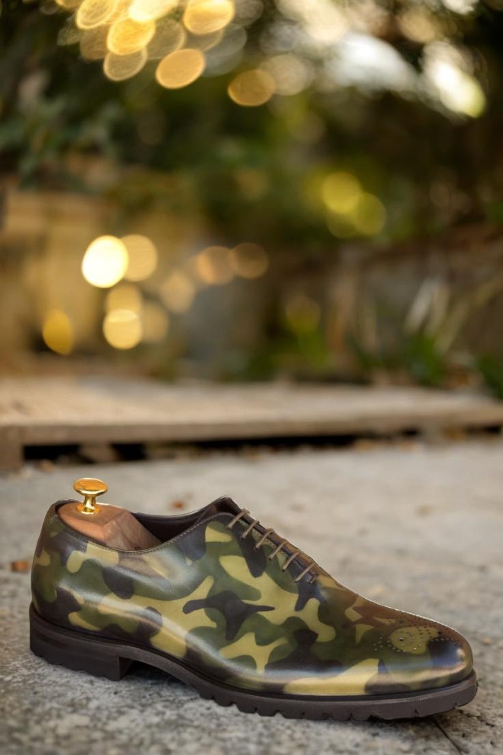 Handcrafted to order in Spain, this is a shoe that begins with intention. Every pair is cut from a single piece of Italian leather—the hallmark of true wholecut construction—finished with a Khaki Camo Hand Patina that gives each shoe a character entirely its own. No two pairs are identical. That’s not a flaw; it’s the point.
