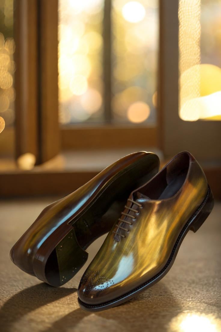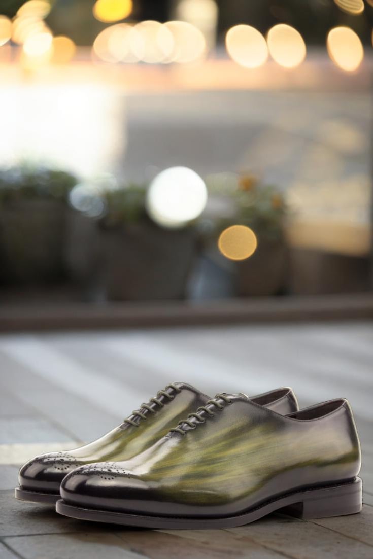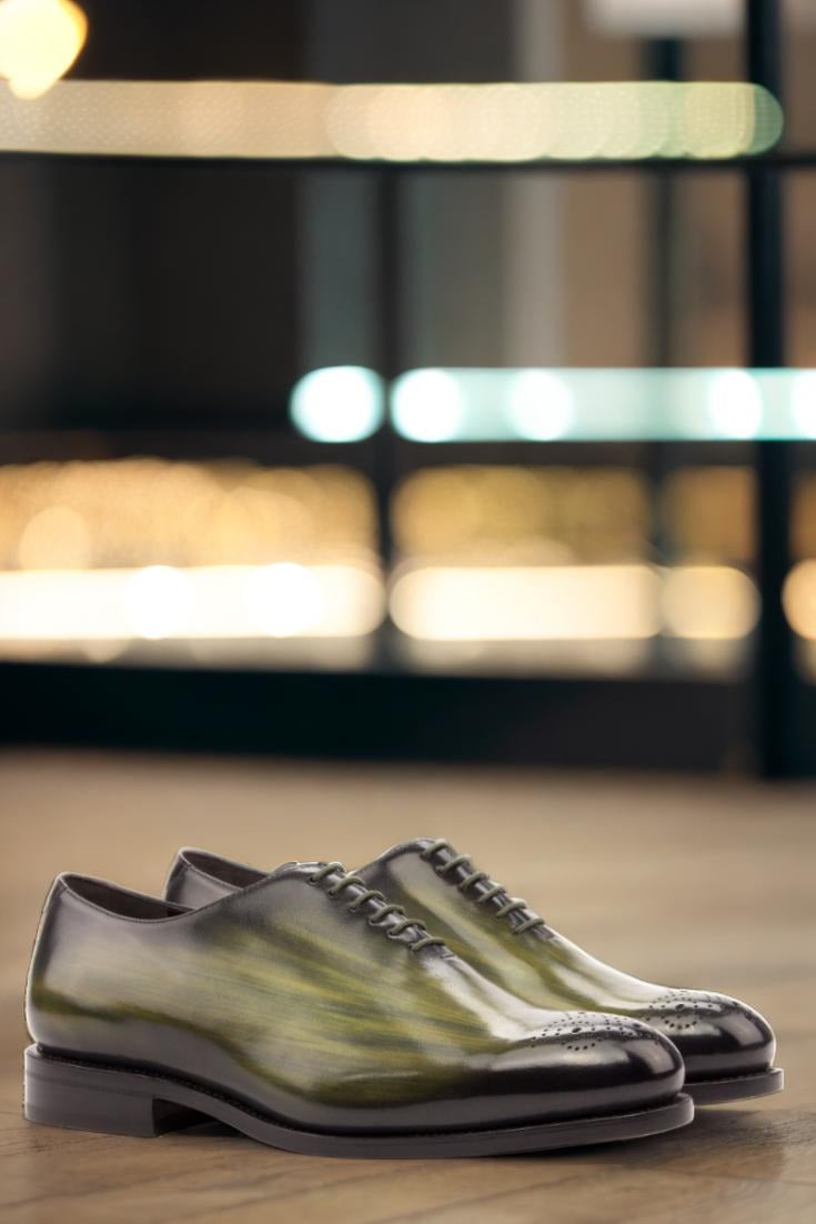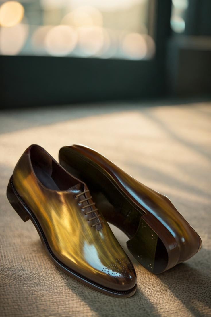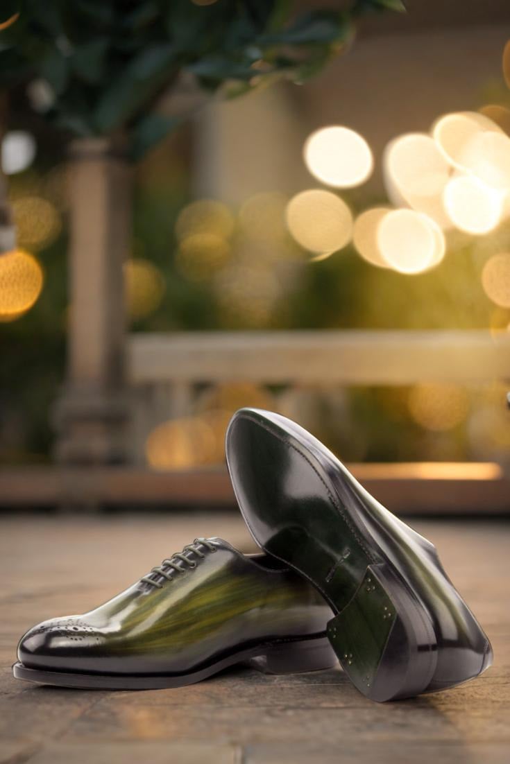 Made with Italian Calf Leather, this shoe boasts a unique Khaki and Burgundy Hand Patina Finish, adding a touch of sophistication to its original design. The Patina Style is deliberately chosen to be Original, giving the shoe a classic look that never goes out of style. And for those who prefer a darker patina, the intensity has been expertly adjusted to give the leather a deeper, richer tone.