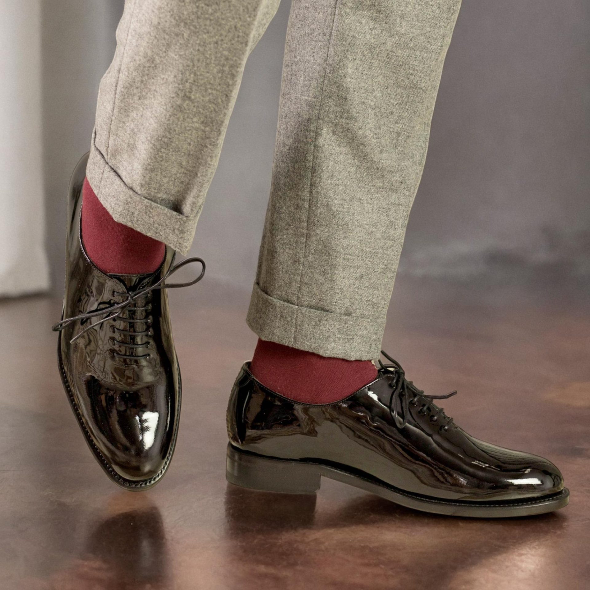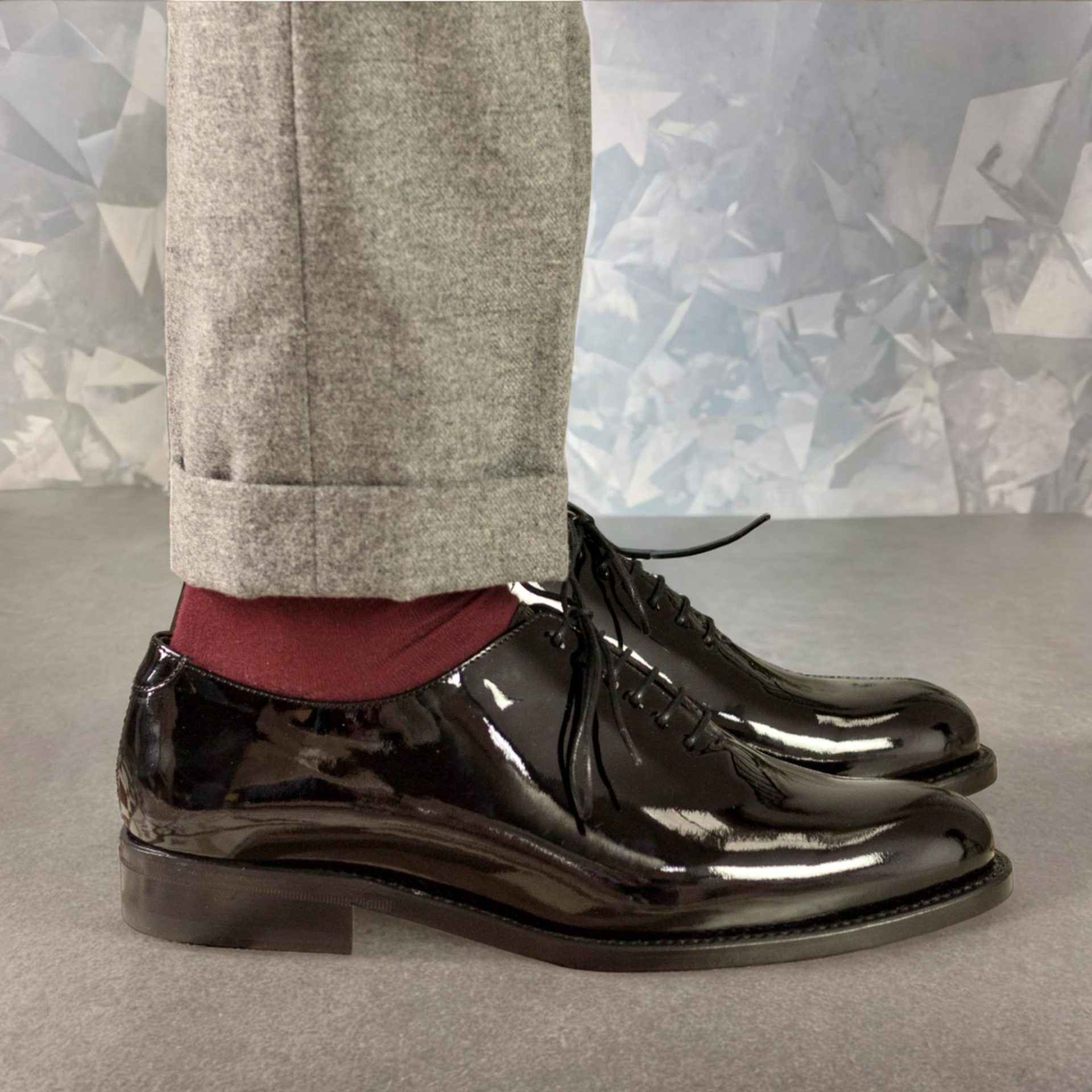 Crafted with meticulous precision, this isn’t just a shoe; it’s a statement. Experience the sleek, polished allure of black patent leather, perfectly complemented by refined black laces. And while its elegance speaks volumes, the hidden comfort of brown calf leather lining ensures your busiest days are met with unmatched support and durability.