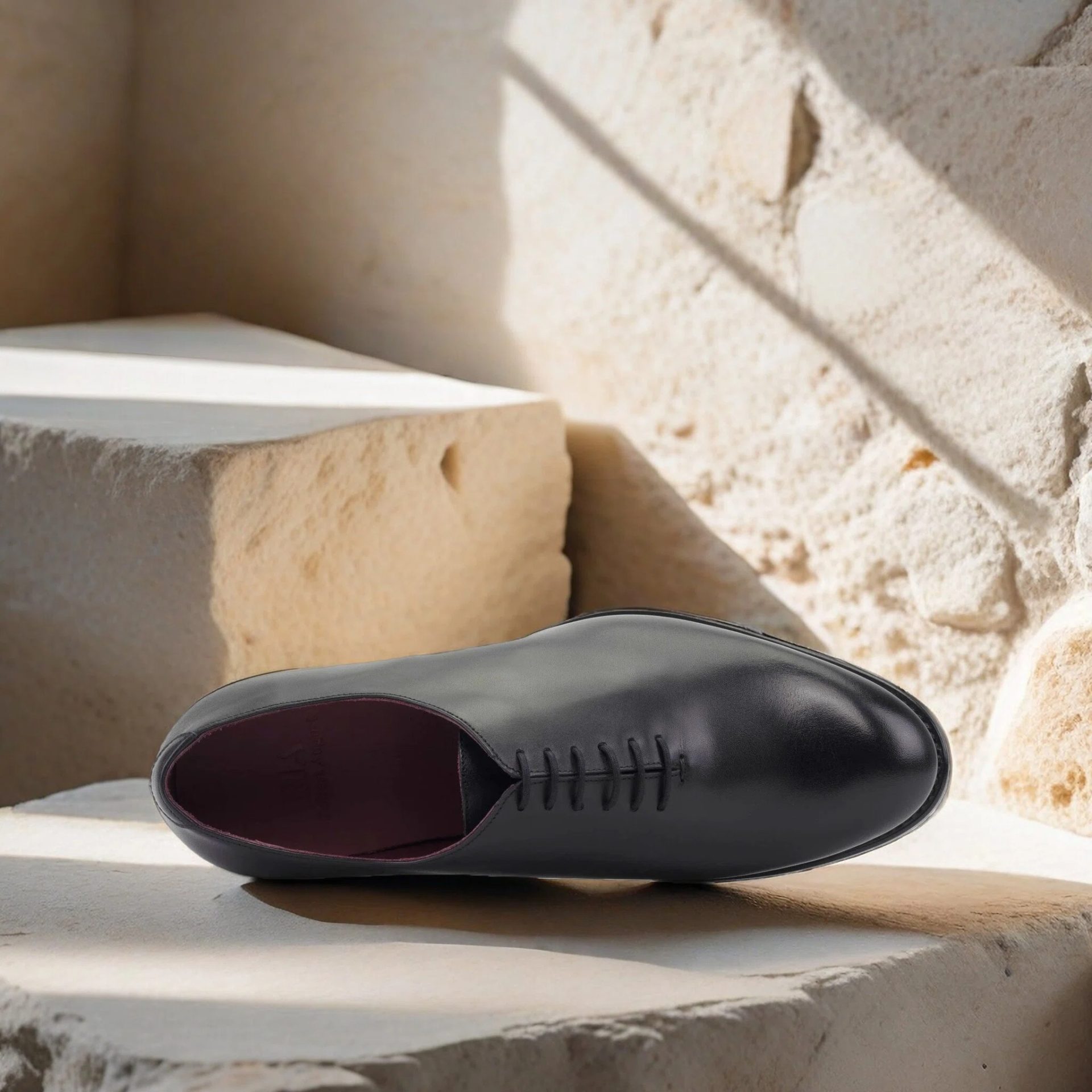 The defining characteristic of this oxford is its “Wholecut” design. Unlike standard oxfords made from multiple segments of leather sewn together, the Wabash Ave. is crafted from a single, continuous piece of flawless Black Luxe Calf leather. This construction method requires skins of the highest grade, as there are no seams or stitching to conceal imperfections. The result is a sleek, uniform silhouette that contours naturally to the foot. The quarter and back maintain this rigorous standard with matching Black Luxe Calf, while the Black Painted Calf tongue adds a subtle textural distinction that integrates seamlessly with the overall aesthetic.