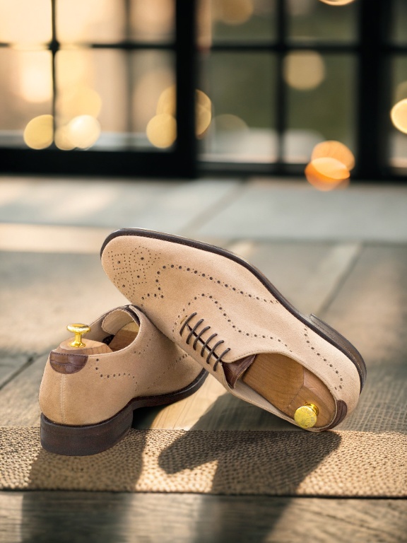 Crafted with high-quality materials, the uppers are made from luxurious taupe kid suede with a touch of dark brown croco for a subtle yet eye-catching detail. The laces come in a classic brown, perfectly complementing the overall design.