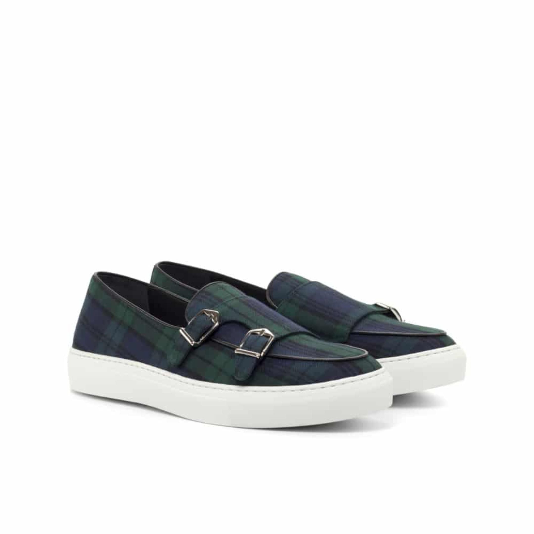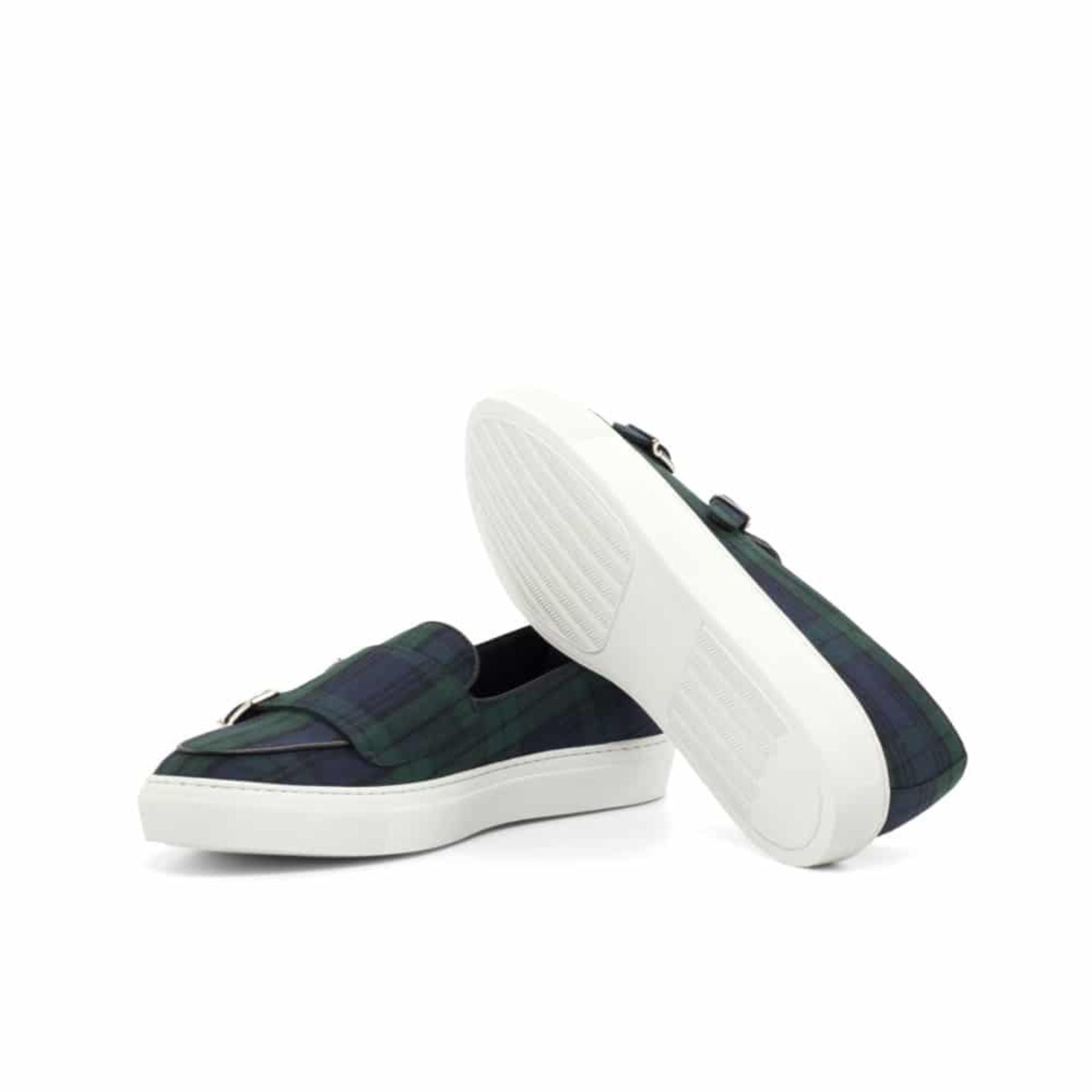 Introducing The Foster Ave. Monk Sneaker No. 4724 from the renowned designer Robert August. This sleek and stylish sneaker exudes a sense of elegance and sophistication with its combination of blackwatch wool, nickel buckles, and black nappa leather piping. But don’t let its refined appearance fool you, this sneaker means business on the streets.