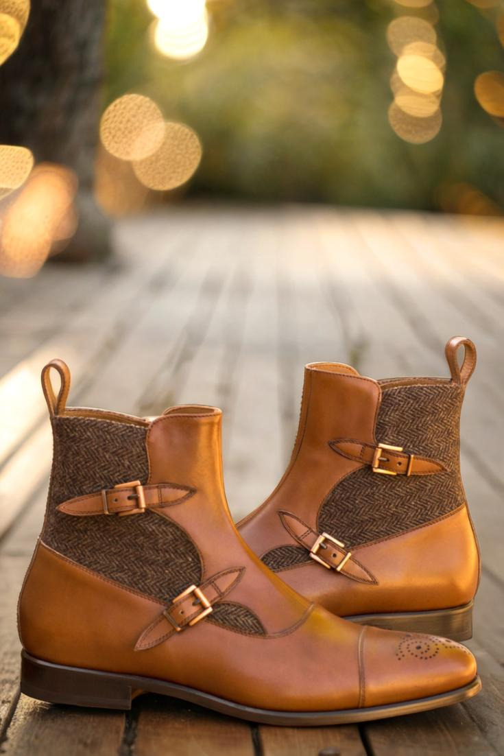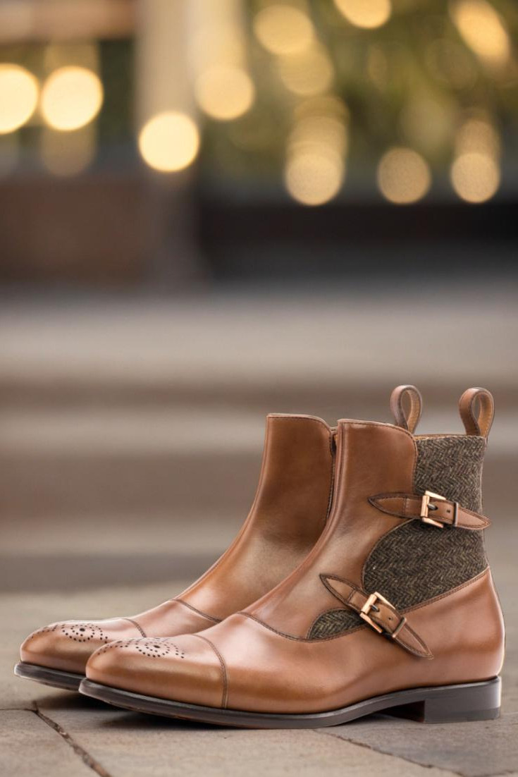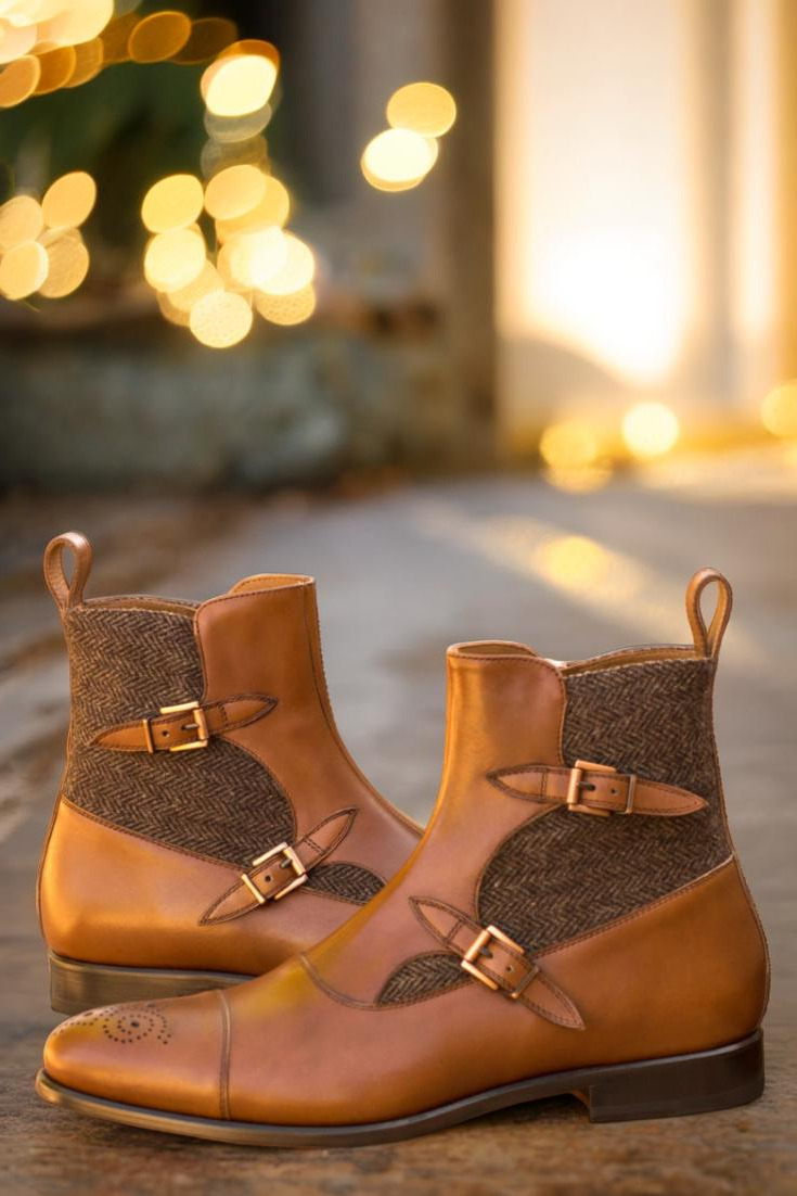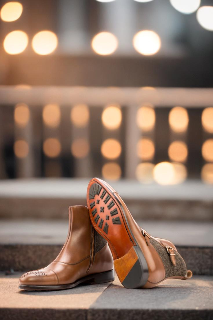 The front, vamp, back, and straps all feature the same stunning medium brown luxe calf leather, providing a cohesive and sleek look. The two copper buckles add a touch of ruggedness, while the zipper allows for easy on and off convenience. And let’s not forget about the plush tan calf leather lining, ensuring maximum comfort for your feet all day long.