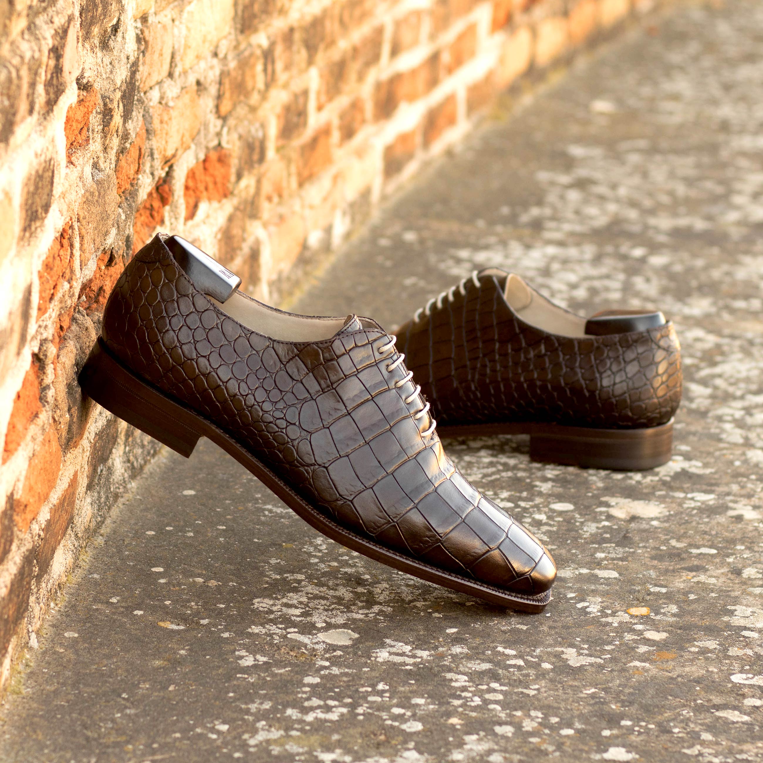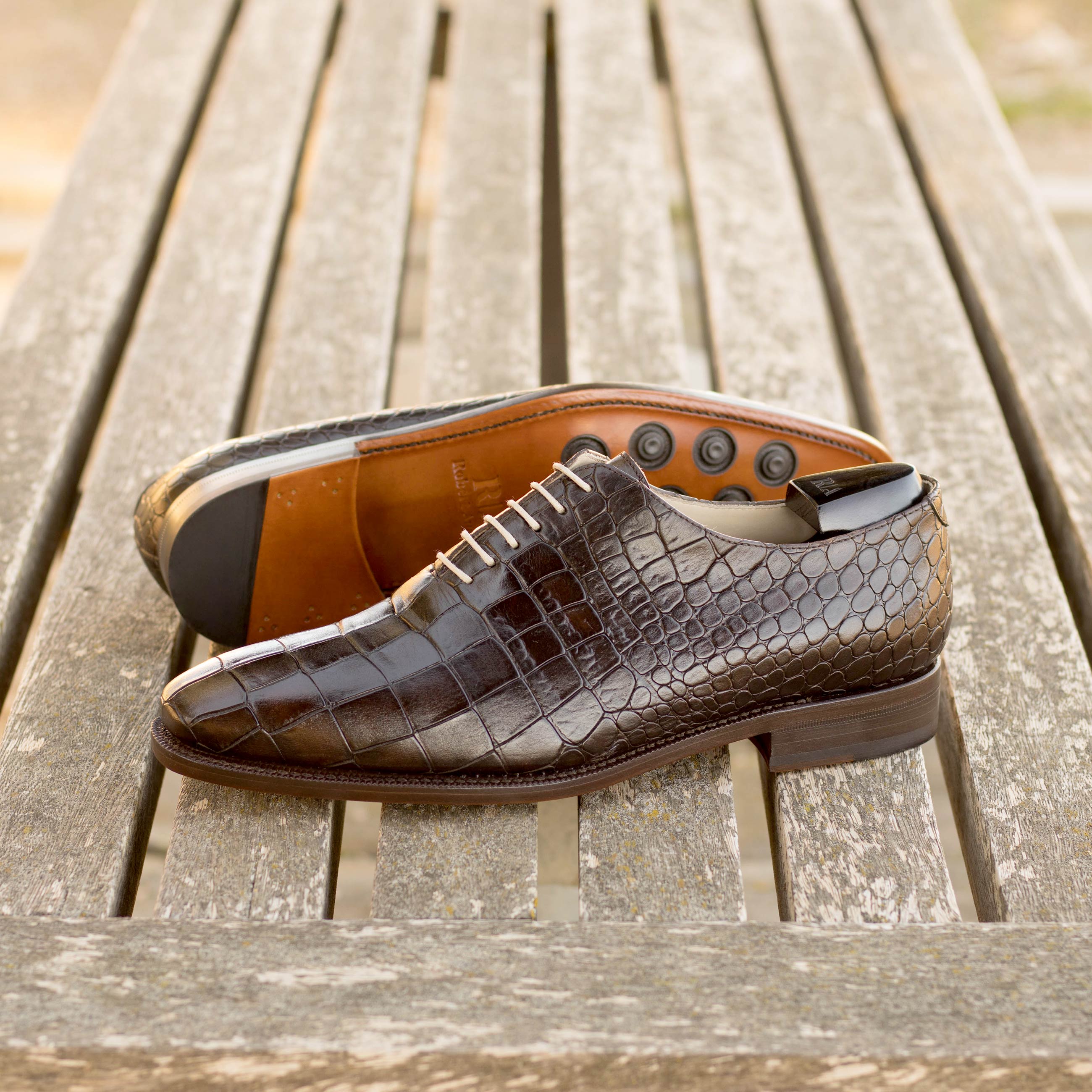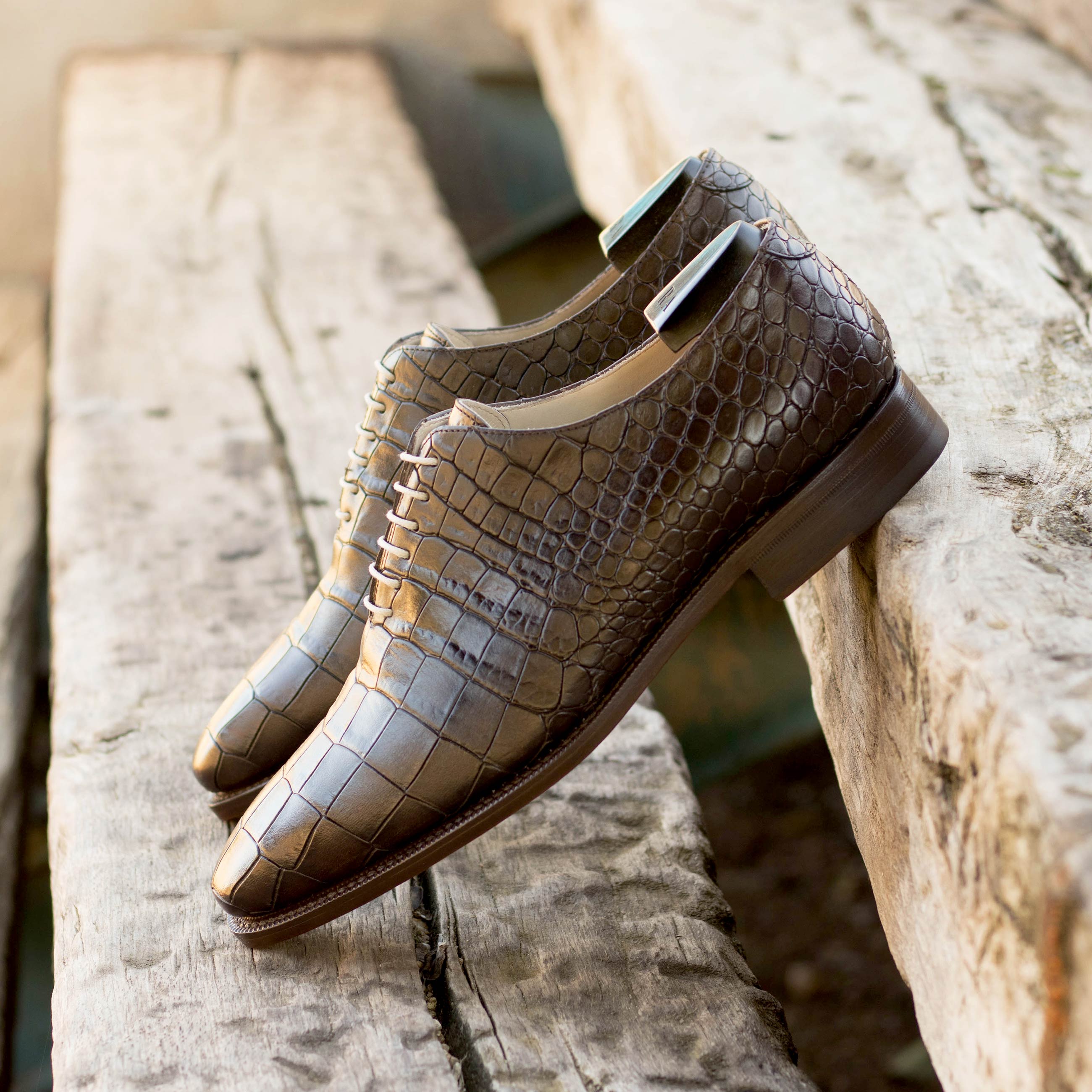 The Wabash Ave. Wholecut Oxford No. 8050 from Robert August is a timeless classic with luxurious detail and superior craftsmanship. Every pair of Wholecuts are constructed with exotic dark brown croco embossed calf leather for an incredibly stylish and durable base. The tongue is cut from the same premium leather for an elegant aesthetic throughout, while the beige calf leather lining provides superior comfort and breathability. The signature Goodyear welt construction compliments the handmade outsole, featuring a Brown City Welt and rubber button injections to give extra durability and cushioning. Lastly, the 773 Last provides unparalleled fit and allows for ample ankle mobility as well as a slightly squared toe on each shoe, allowing you to feel the ultimate in comfort while looking exceptional from top to bottom. With classic style and modern craftsmanship to match, the Wabash Ave Wholecut Oxford No. 8050 is sure to become your go-to choice every season.