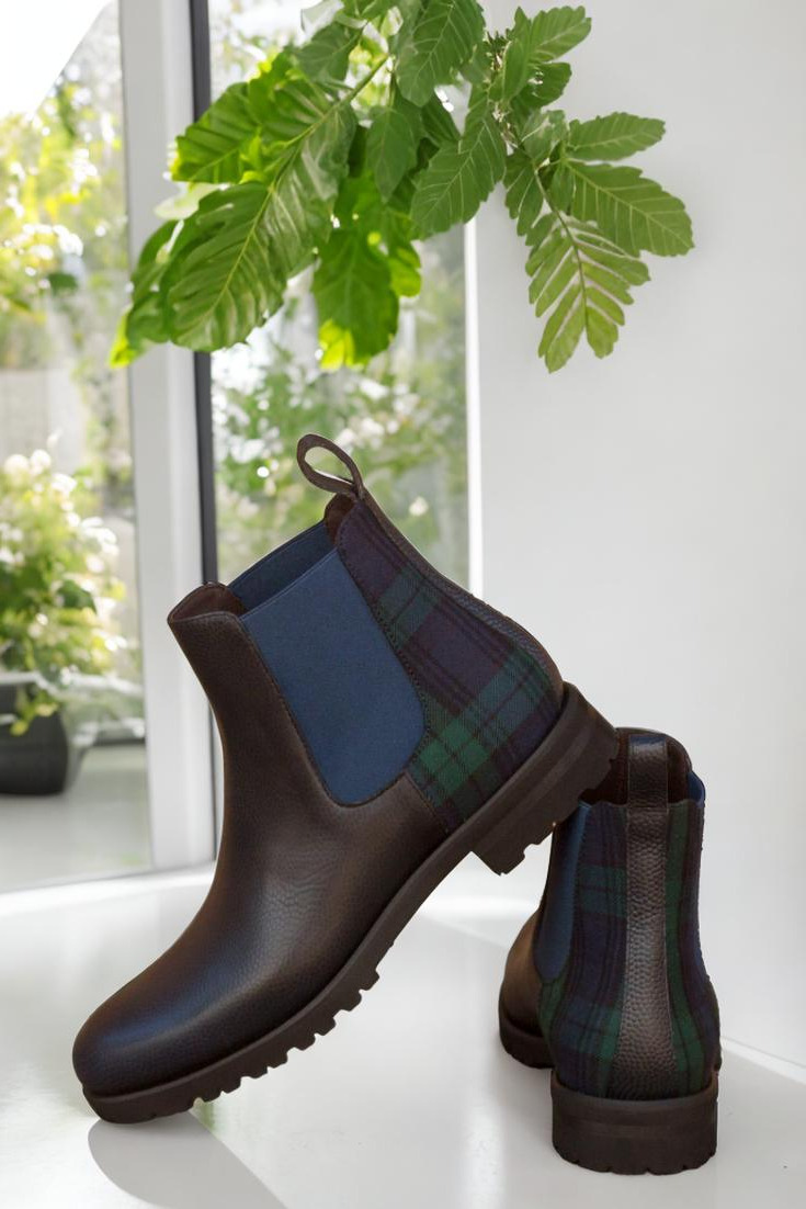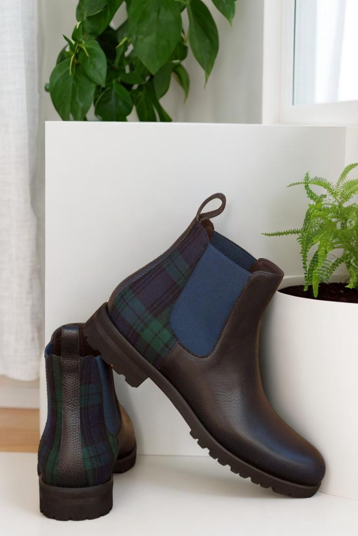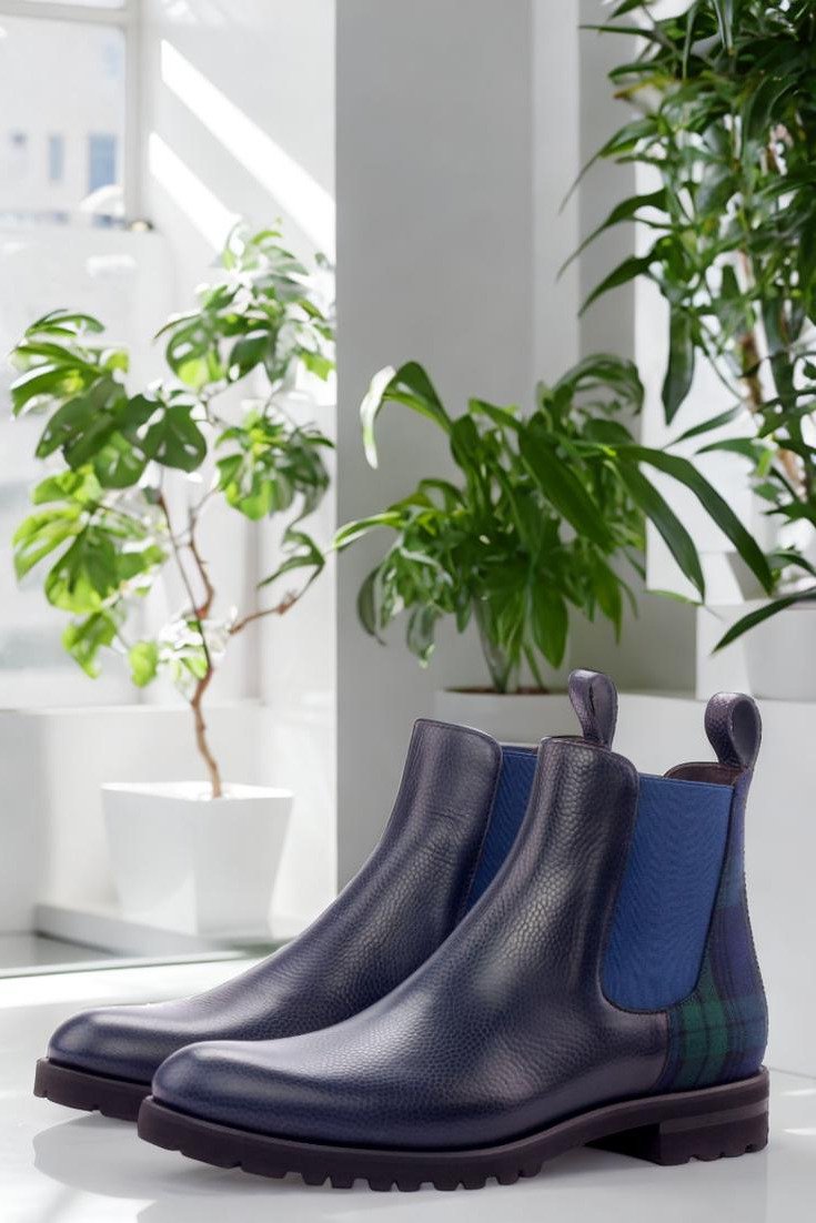 Meet your new go-to boot: The LaSalle St. Women’s Chelsea Boot No. 3070 is a perfect balance of style, versatility, and expert craftsmanship. Featuring navy blue pebble grain leather paired with distinctive green and blue blackwatch wool panels, these boots offer a timeless look that transitions effortlessly from the boardroom to weekend outings. Handcrafted in Spain using Blake stitched construction, they are designed to deliver exceptional durability while maintaining a sleek profile. The premium brown calf leather lining enhances comfort and breathability, making them ideal for long days on your feet, while the ultralight commando sole ensures superior cushioning and traction on a variety of surfaces. Elastic side panels provide easy slip-on convenience, and the dress welt adds a refined touch, making these boots equally suitable for professional settings or casual gatherings. Whether you’re navigating busy city streets, attending client meetings, or heading out for a relaxed weekend brunch, the LaSalle St. Chelsea Boot offers the durability, versatility, and craftsmanship that busy professionals demand, keeping you stylish and comfortable every step of the way.