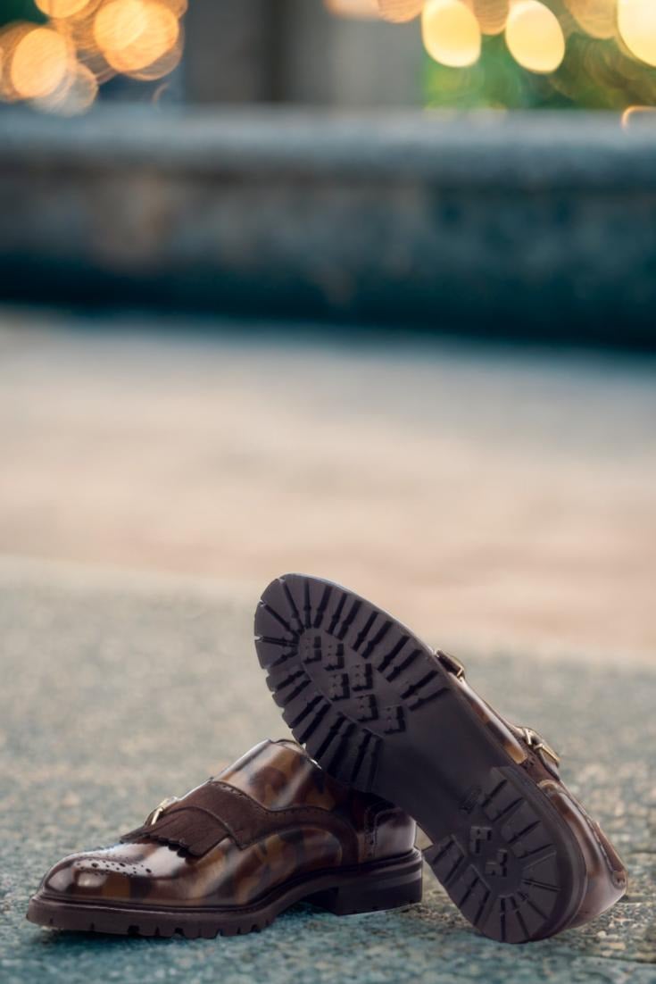 Beneath the striking exterior lies the ultralight rubber commando sole, providing superior comfort and durability, making this shoe as practical as it is stylish. Whether you’re striding into the office or stepping out for an evening event, the Fullerton Ave. Kiltie Monk delivers all-day confidence and versatility. And with customizable options, you have the freedom to tailor this masterpiece to reflect your unique personality. It’s not just footwear—it’s a perfect blend of craftsmanship, comfort, and individuality.