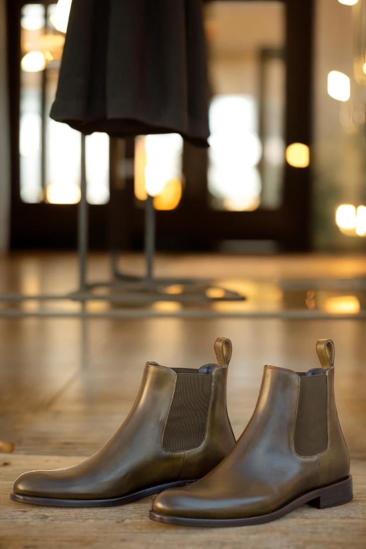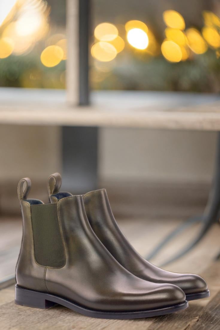 Crafted with precision and expertise, these boots feature a stunning Olive Painted Calf Leather upper that exudes an air of sophistication and luxury. From the elastic Khaki details to the rich Navy Blue Calf Leather lining, every detail has been carefully chosen to provide you with the utmost comfort and style.
