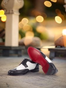 The black and white box calf uppers exude elegance and sophistication, making them versatile for both formal and casual occasions. Paired with the sleek black laces, this shoe is the epitome of chic and sleek style. But it’s not just about looks, as the red calf leather lining provides ultimate comfort, so you can look and feel your best all day long.
