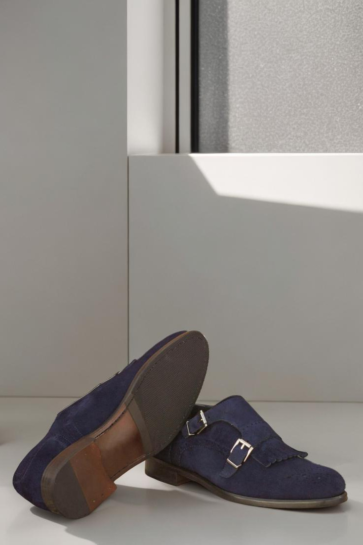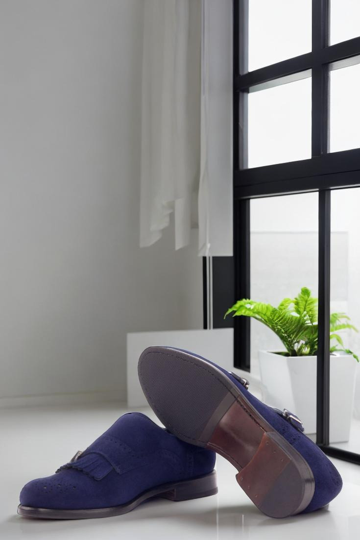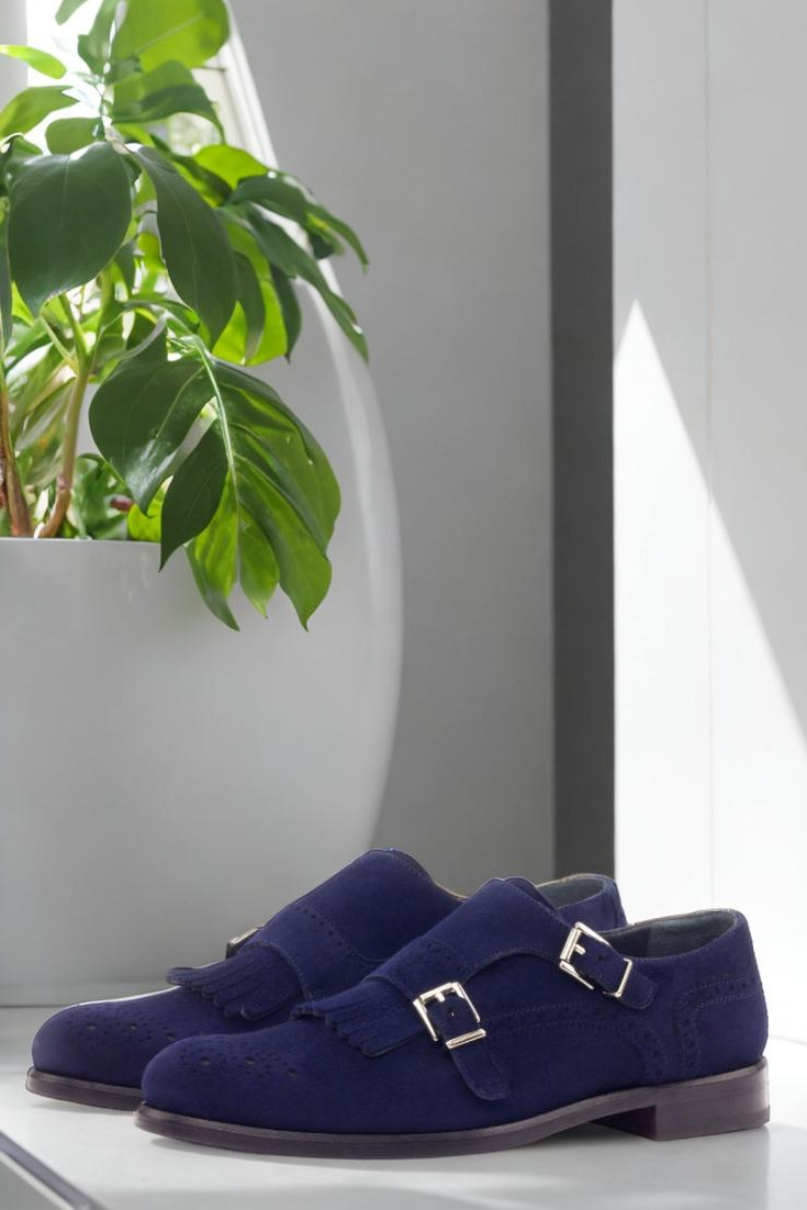 Introducing the Fullerton Ave. Women’s Kiltie Monk No. 3075 from Robert August. Crafted with a bold and modern design, these shoes are the perfect addition to any woman’s wardrobe. The navy blue kid suede uppers provide a touch of sophistication, while the nickel buckles add a sleek and stylish touch. The lining is made of premium calf leather, ensuring durability and comfort with every step.