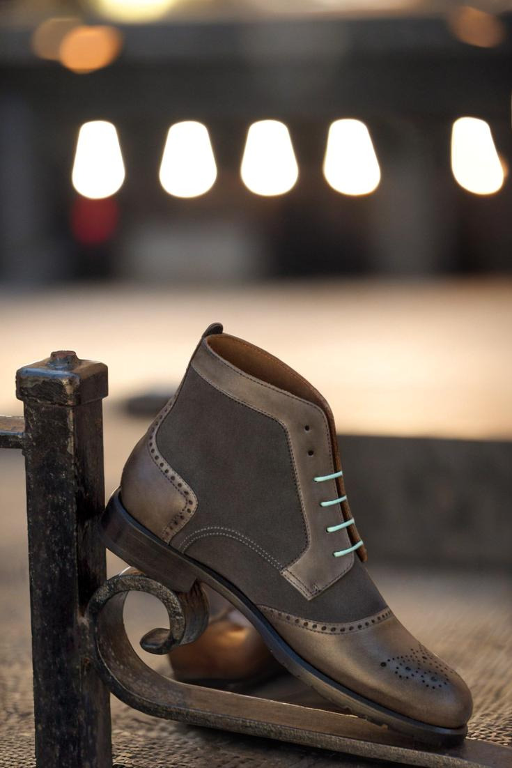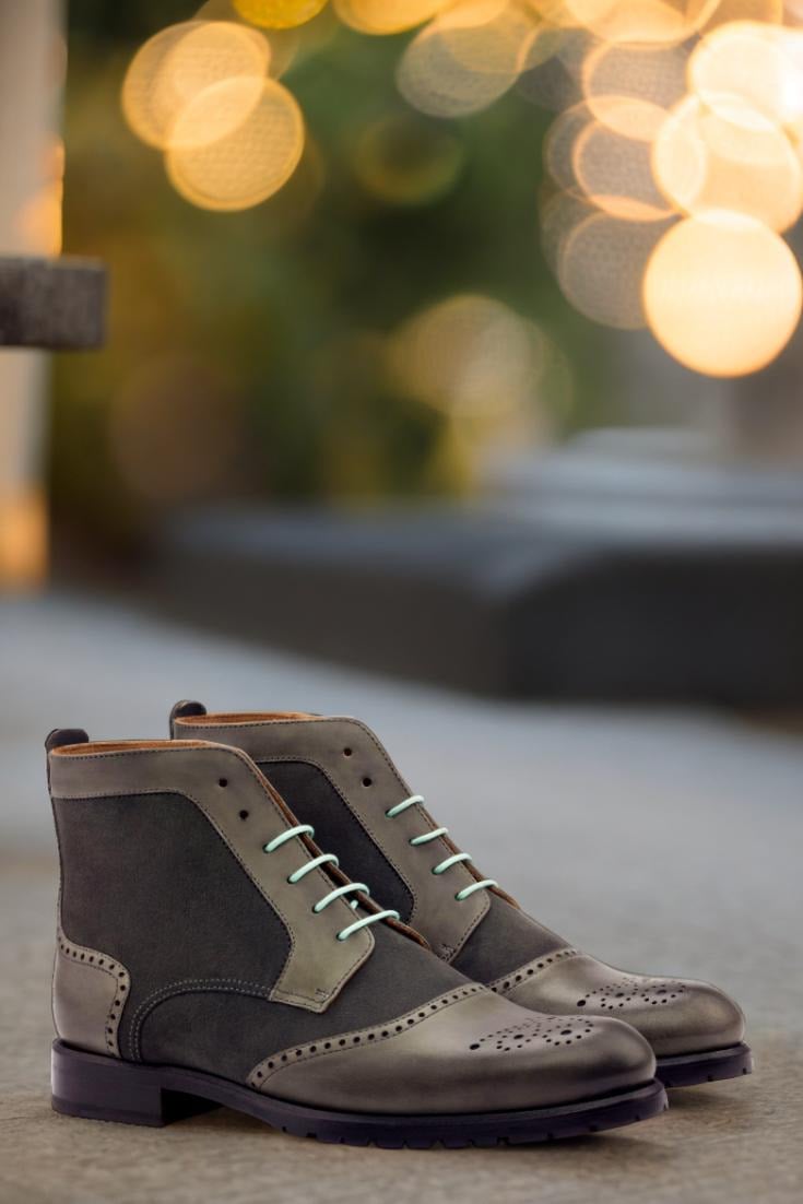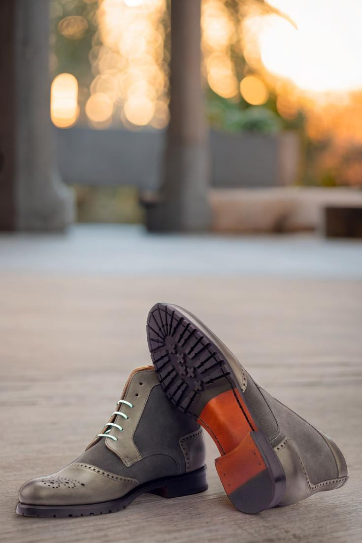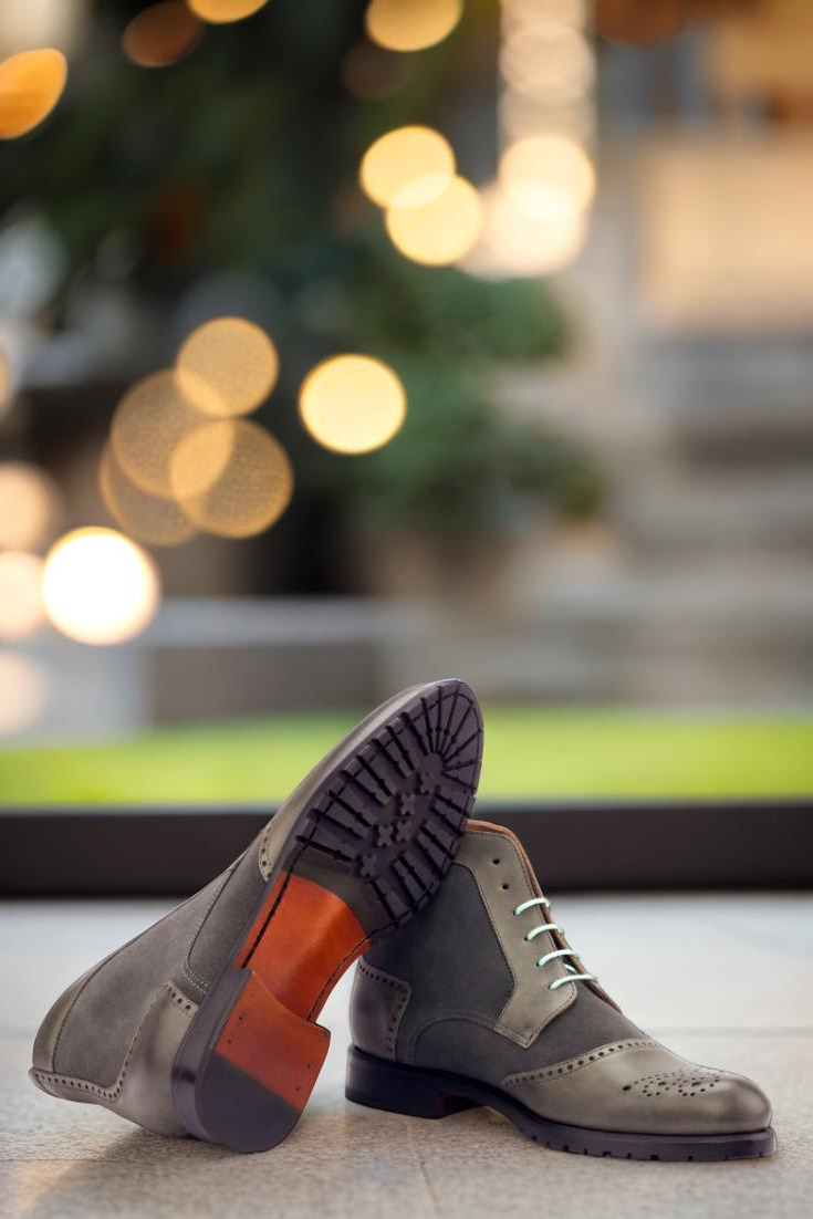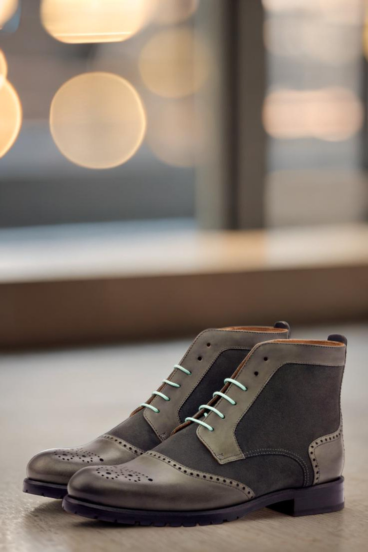 Handcrafted in Spain, these boots feature a stunning combination of materials – grey luxe suede and painted calf leather. Not only do they make a unique and stylish statement, but they also provide the ultimate comfort and durability.