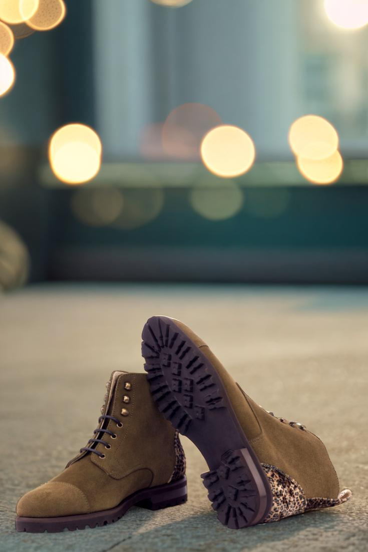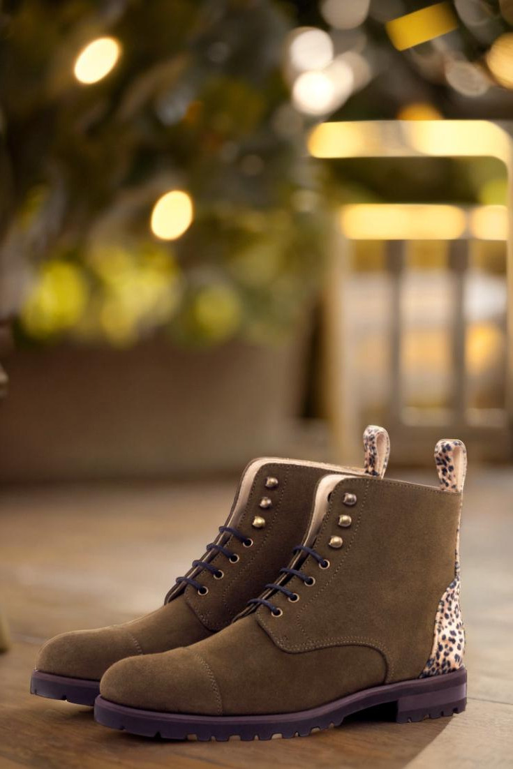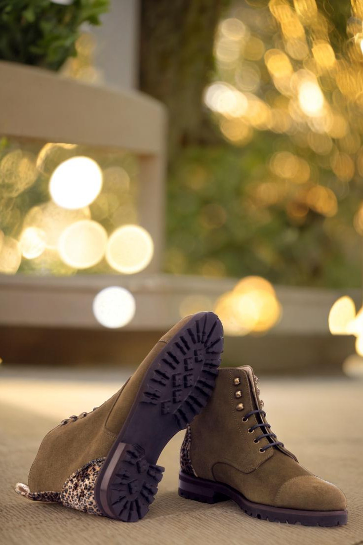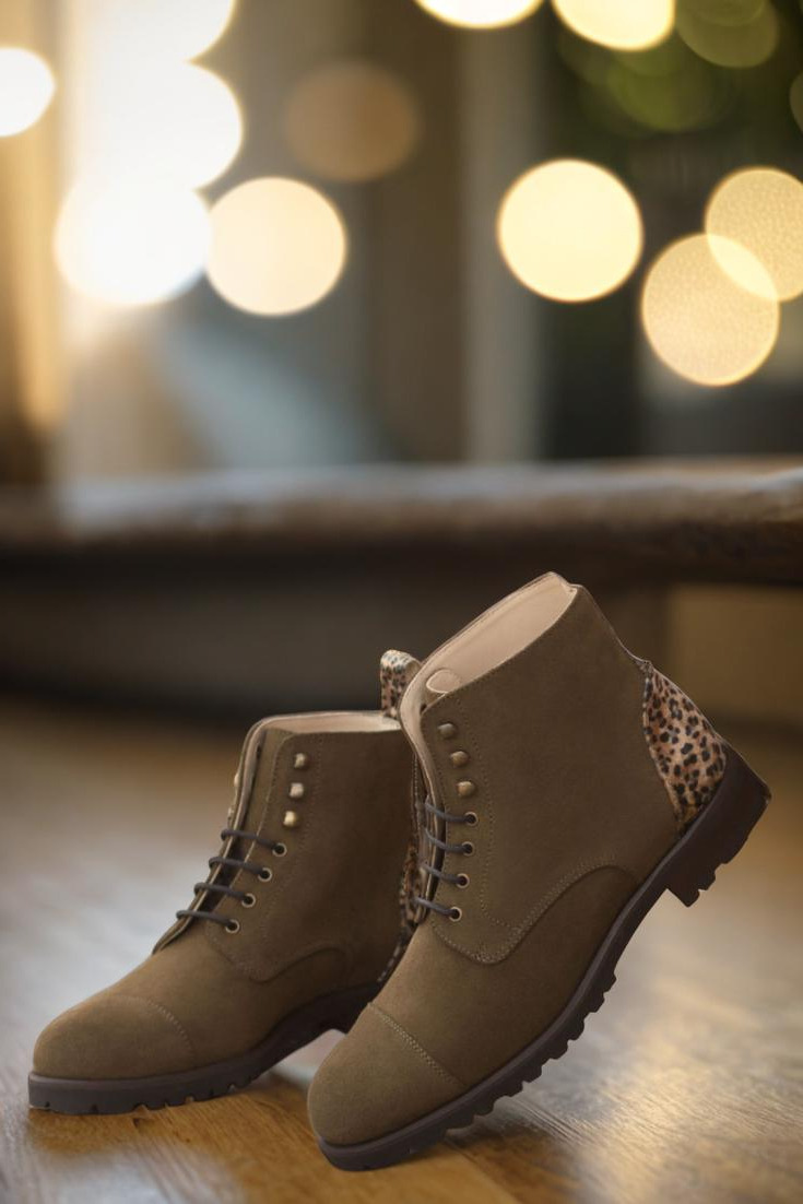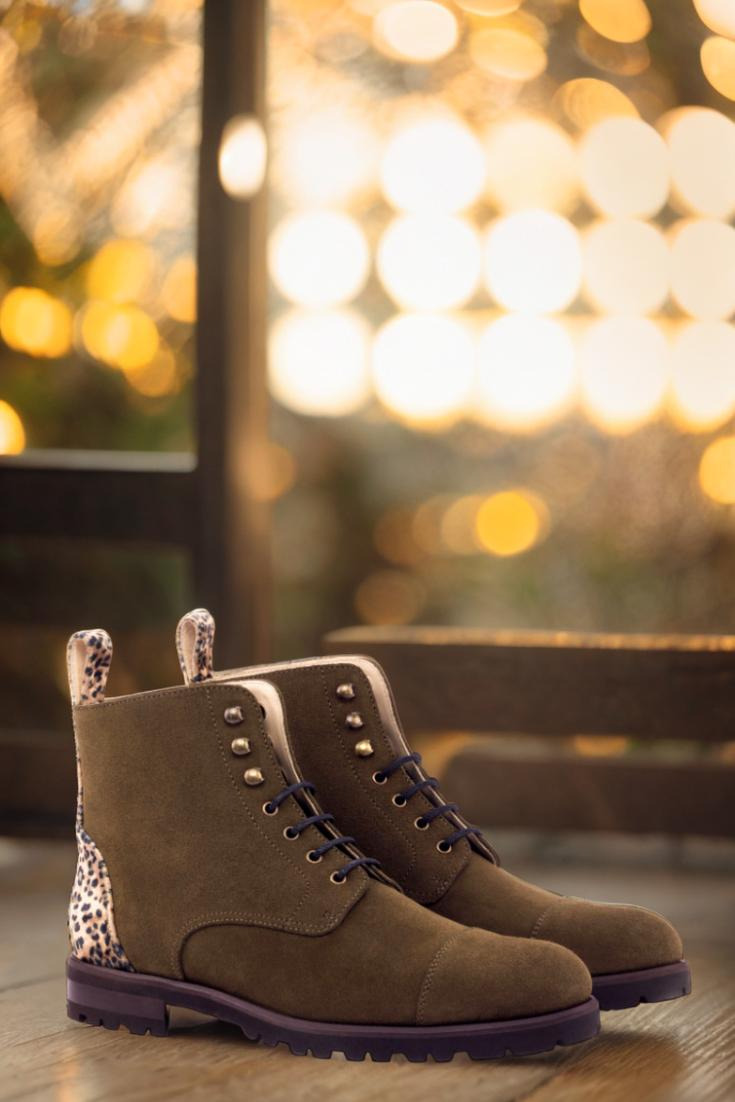 Introducing the ultimate combination of luxury and versatility – The Canal St. Women’s Lace Up Captoe Boot No. 3123 from Robert August. Made with our exclusive Khaki Luxe Suede in a stunning Leopard Sartorial pattern, these boots are the perfect balance of bold and sophisticated.